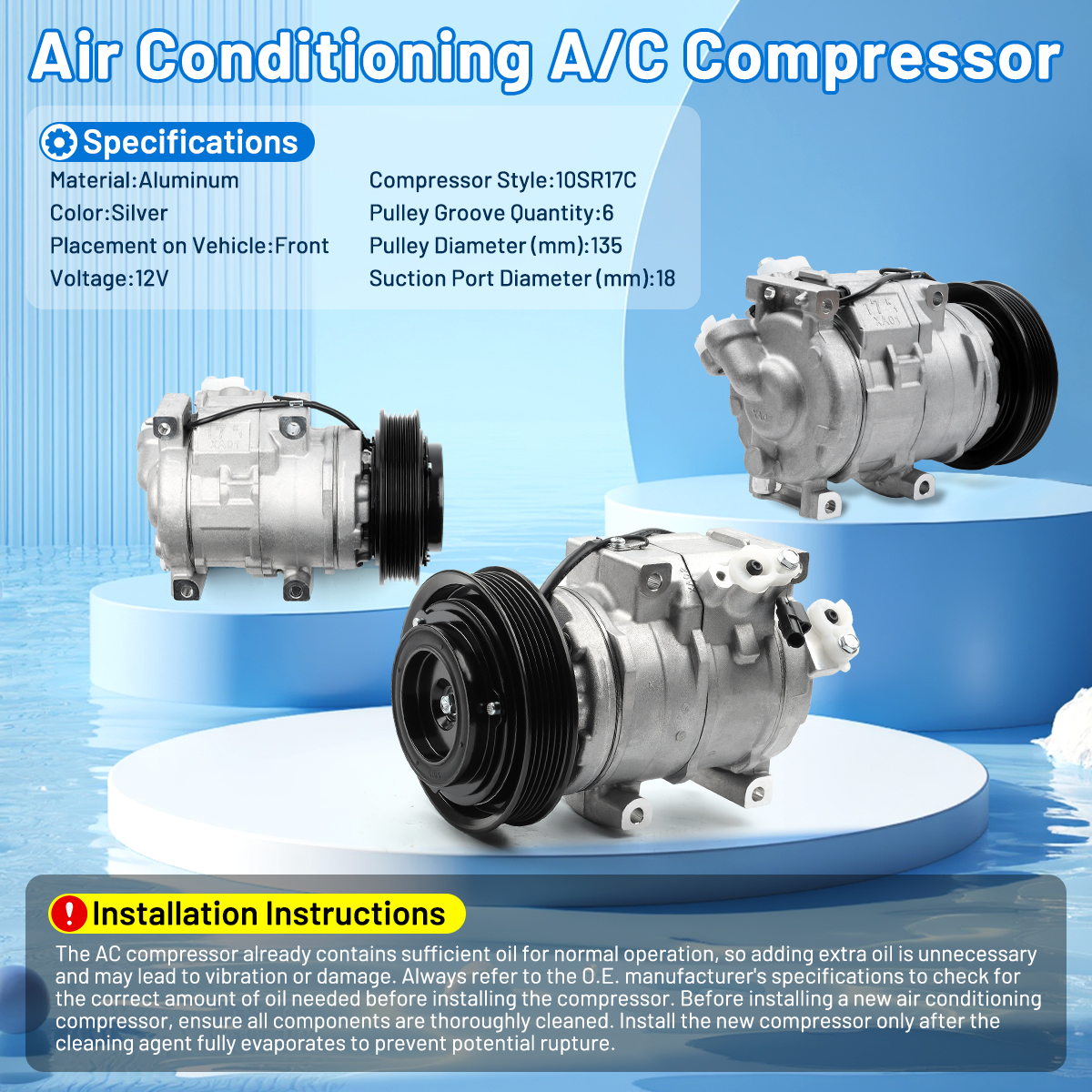 It is necessary to add appropriate amount of oil and refrigerant to the ac compressor before use.