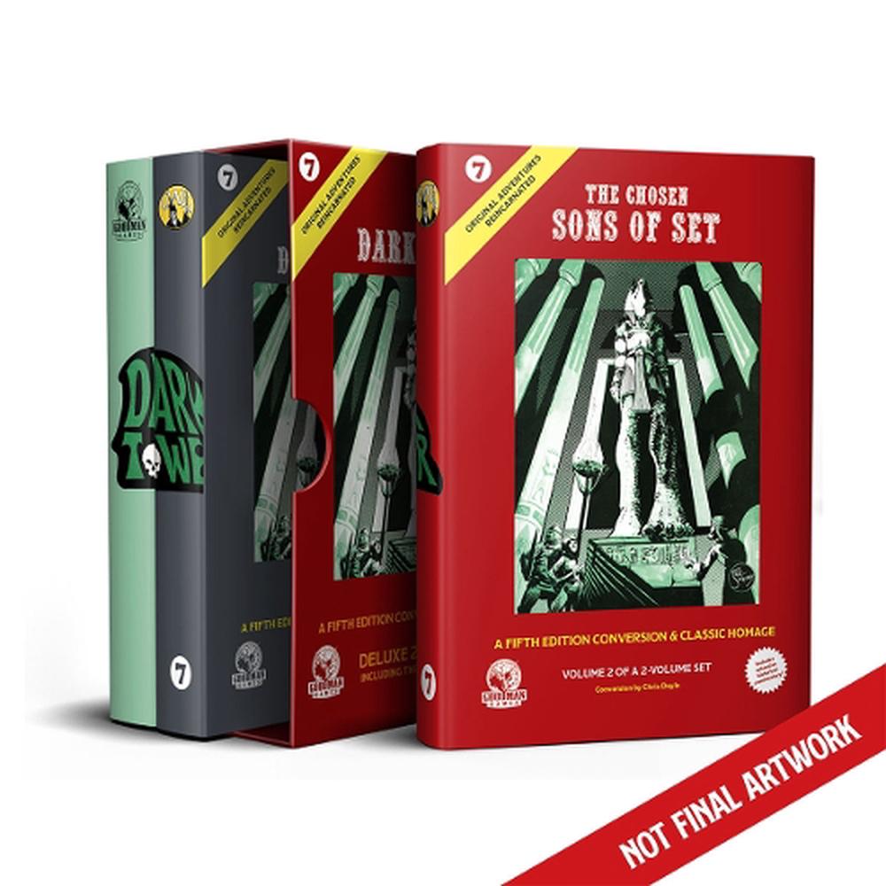 Dark Tower is an homage to the classic adventure and is a full 5E conversion, plus additional all-new material. A three-volume set presented in a slipcase, these books contain a reprint of the original adventure plus essays from industry luminaries (Volume 1), a full 5E conversion of the classic adventure (Volume 2), and three brand-new adventures, The Chosen Sons of Set (Volume 3). This sprawling campaign is suitable for 7th-level and higher characters and can be easily dropped into your own setting."