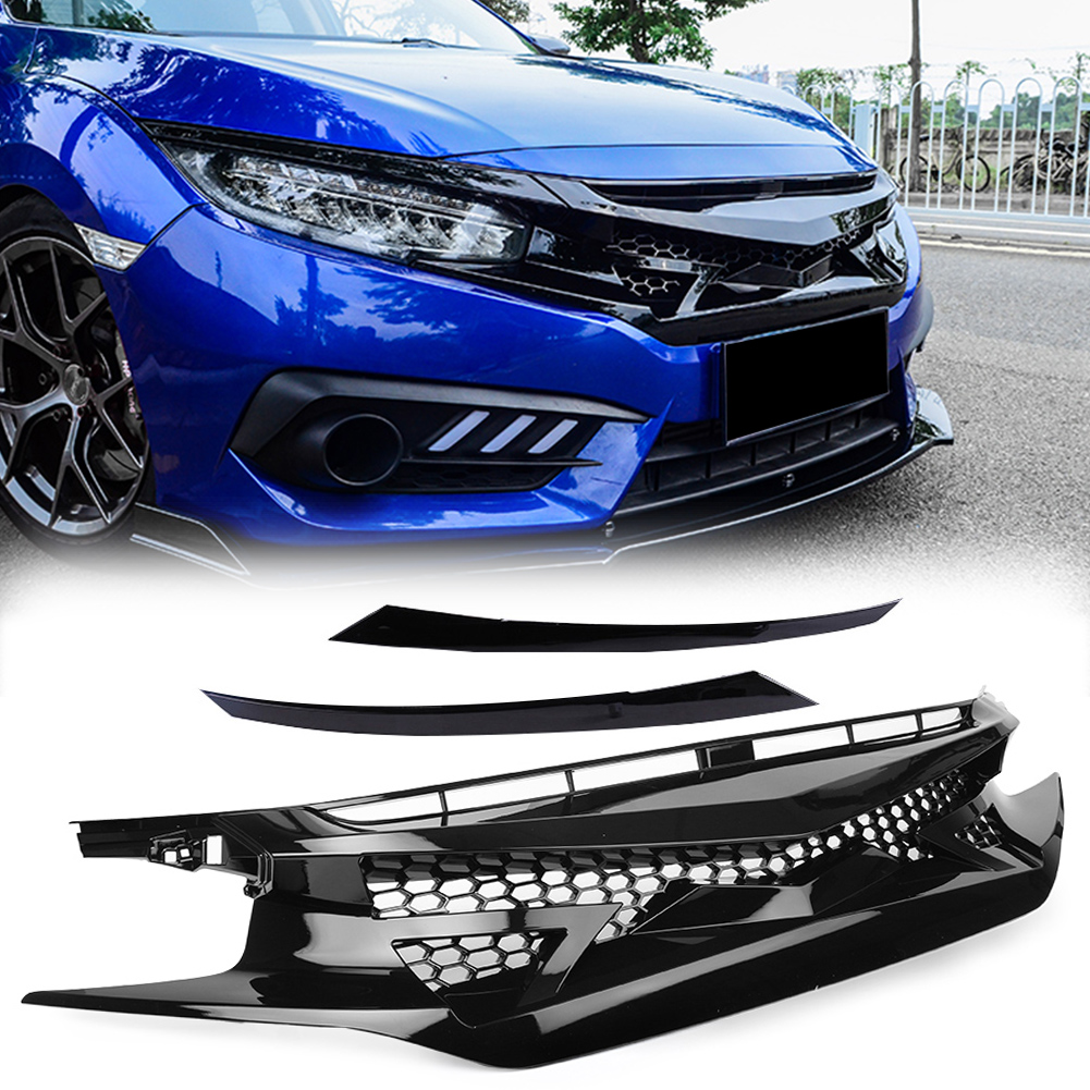 Gloss Black Mesh Front Hood Grille For Honda Civic 10th 2016-2021