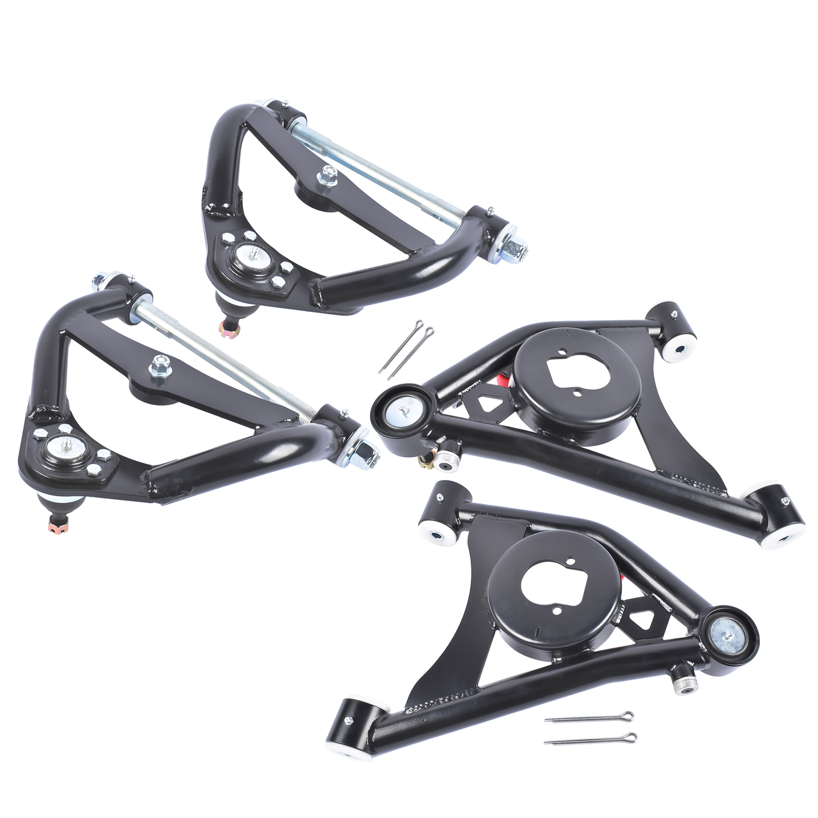 Kit includes both upper and lower control arms ready for installation