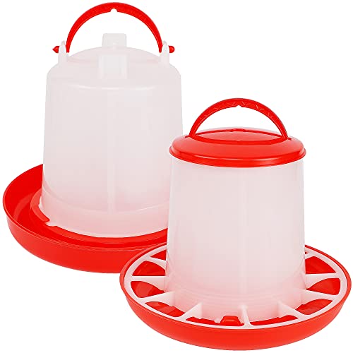 Our chicken feeder has a capacity of 1 Lb and the waterer can hold 1.5 L water, which are perfect for baby chicks, 0 to 3 weeks of age is recommended. Also suitable for duck, quail or pigeon.