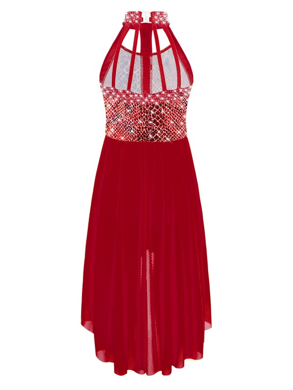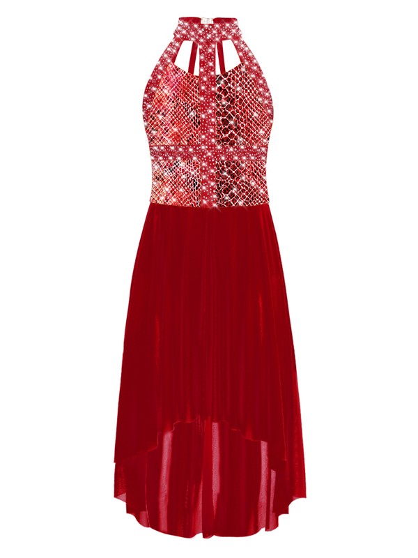 Kids Girls Dresses Sparkly Leotard Sleeveless Dress Cutout Dancewear Halter
