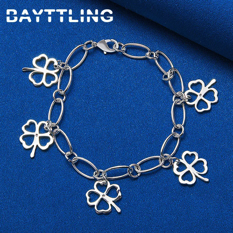 925 Sterling Silver Fine 5 Four Leaf Clover Bracelet For Women Charm Fashion Gifts Wedding Temperament Jewelry Accessories
