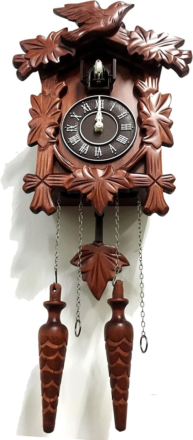 Bring home the allure of a bygone era with our handcrafted vintage wood cuckoo wall clock. Whether you're decorating your bedroom, looking for a unique gift, or simply wish to indulge in a piece of history, this exquisite timepiece serves as both a functional clock and a delightful conversation starter. Delight in the artistry of craftsmanship and the enchanting melodies it offers at every hour.