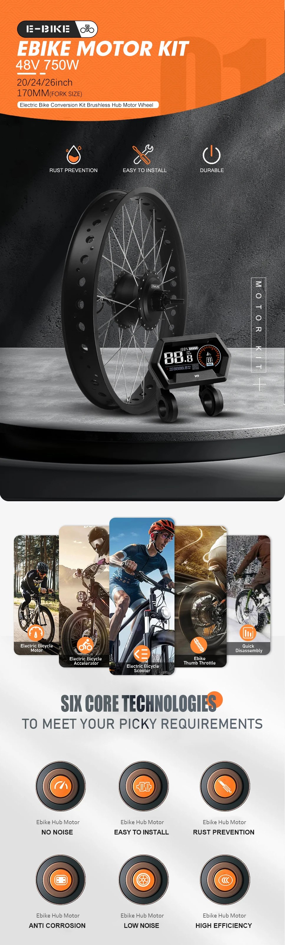 ◆Electric bicycle rear wheel conversion kit features 48V 750W brushless and gear hub motor for efficient and noiseless running; can easily convert your bicycle to electric bike and reach the maximum riding speed of 40KM/H, suitable for regular bicycles and mountain bikes that are used on commuting and short journey