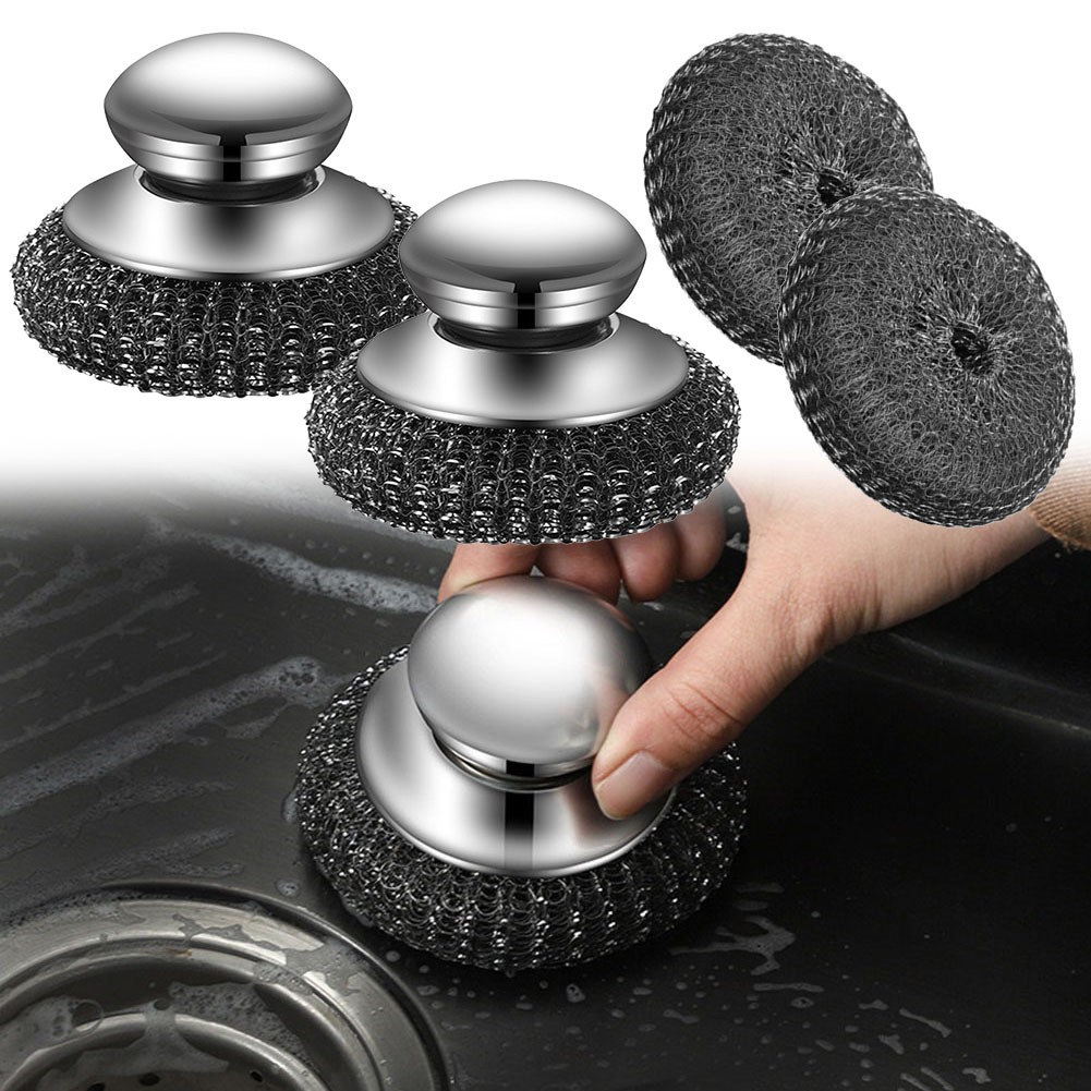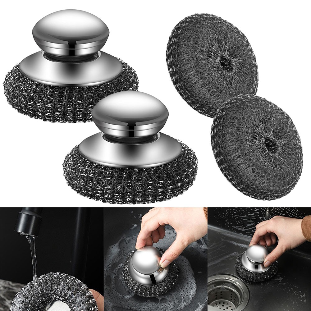 Kitchen Essentials 2pcs Steel Wool Brush Set for Stubborn Grease Removal