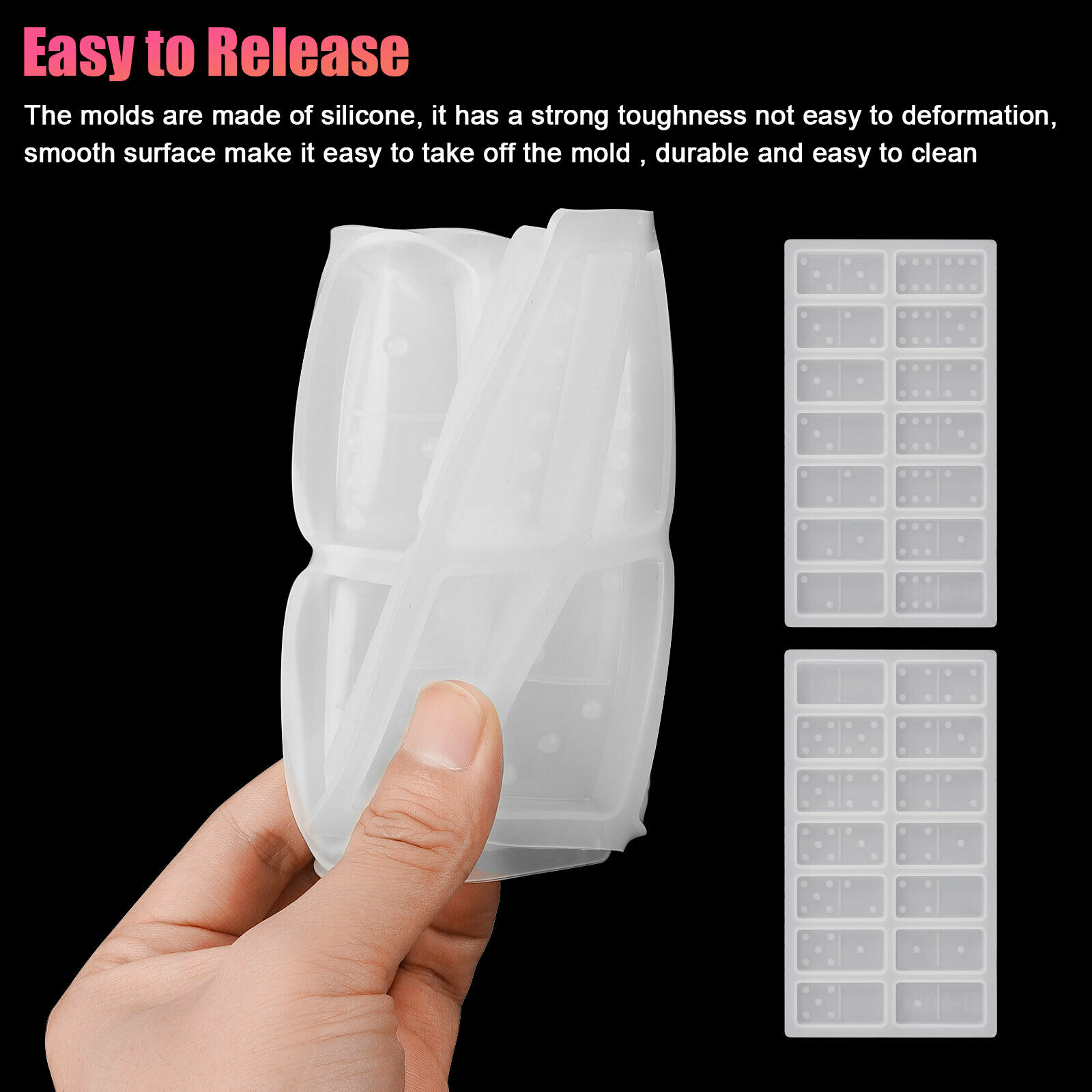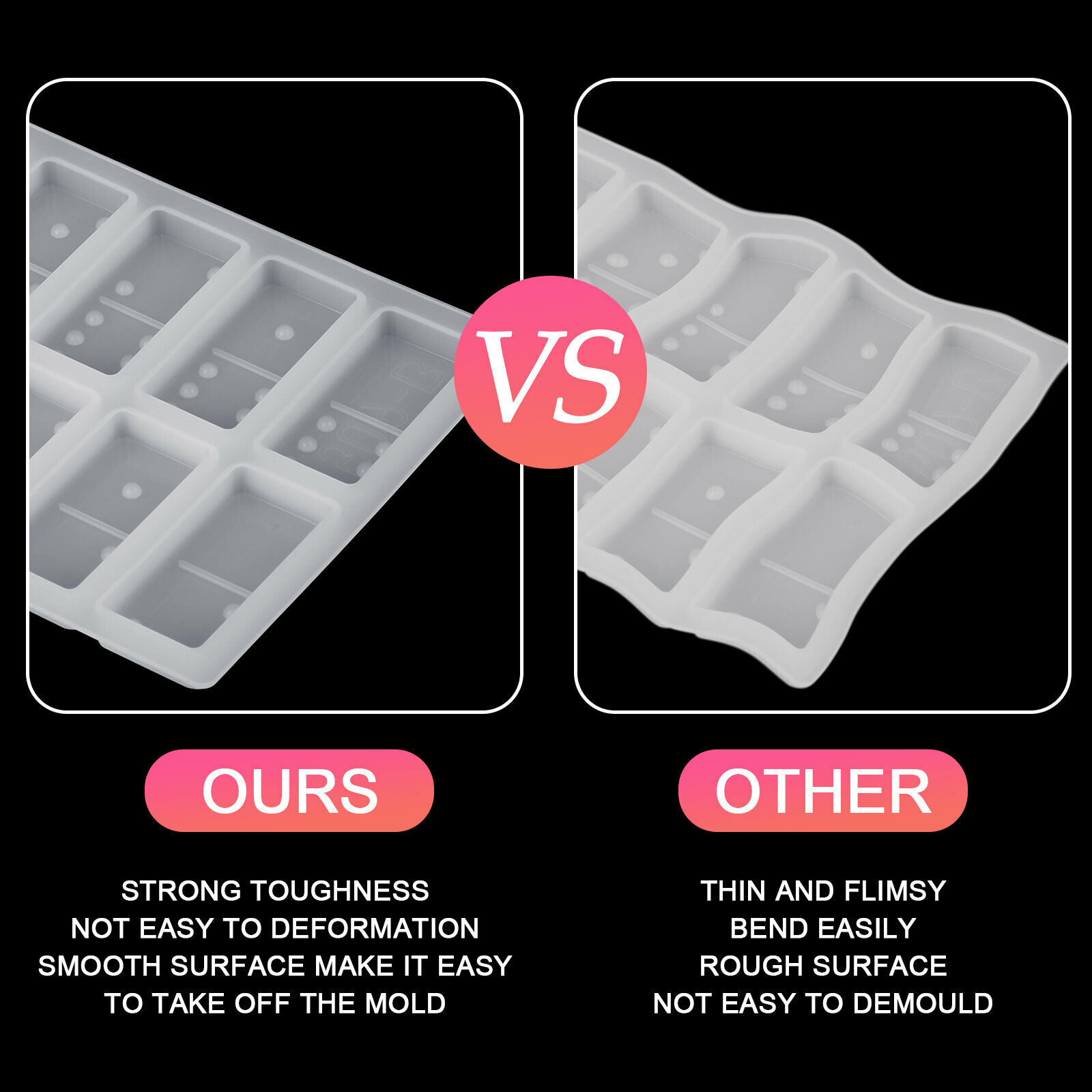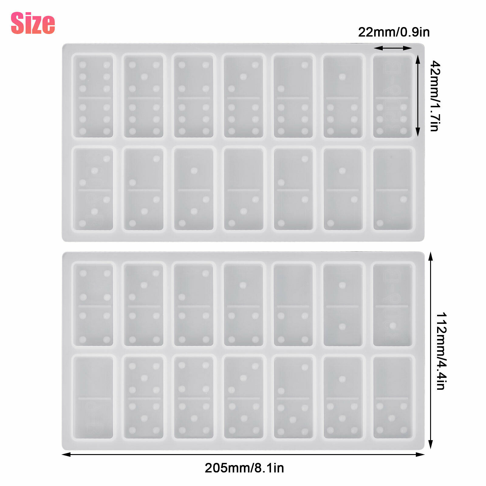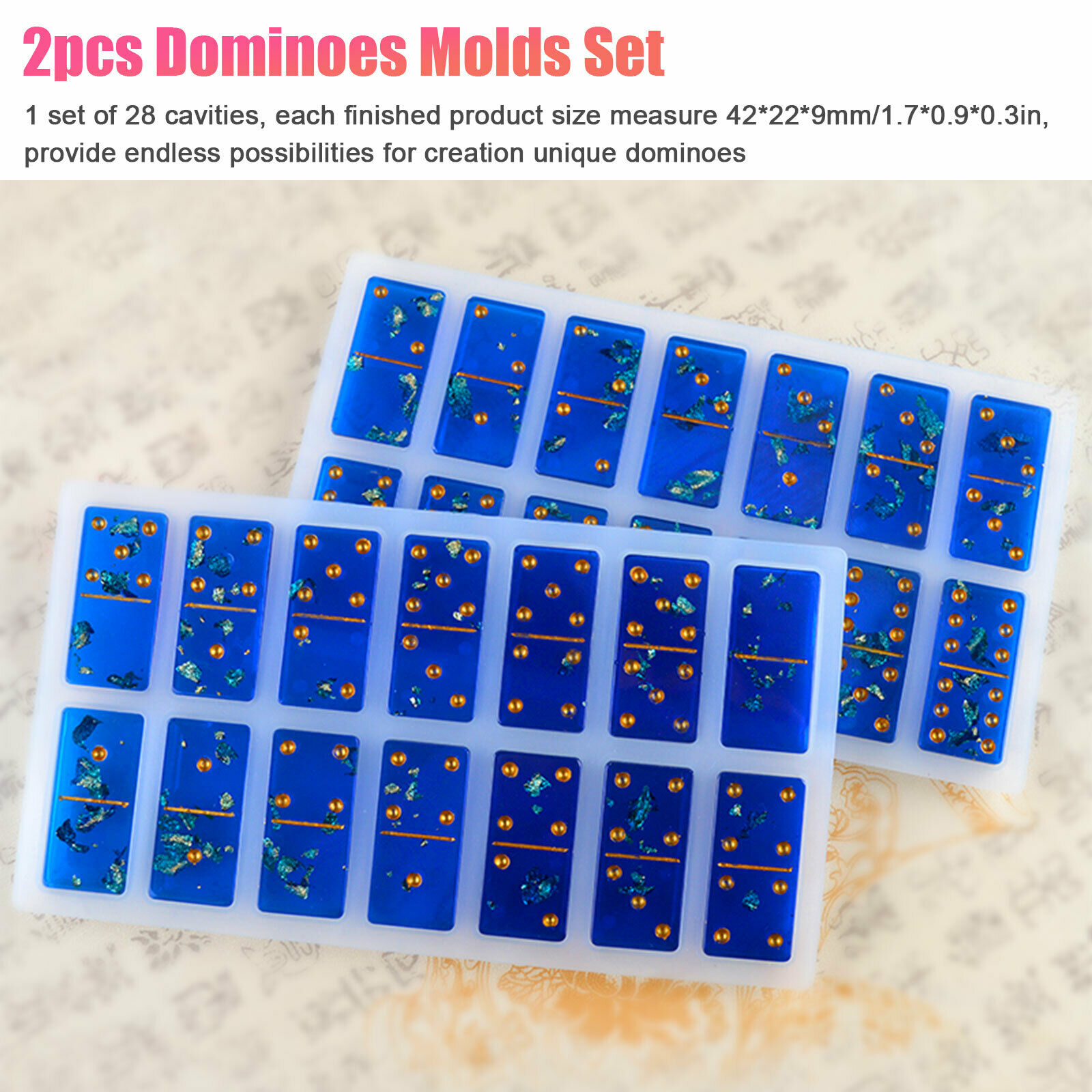 2pcs Dominoes Molds Set: 1 set of 28 cavities, each finished product size measure 42*22*9mm/1.7*0.9*0.3in, provide endless possibilities for creating unique dominoes.