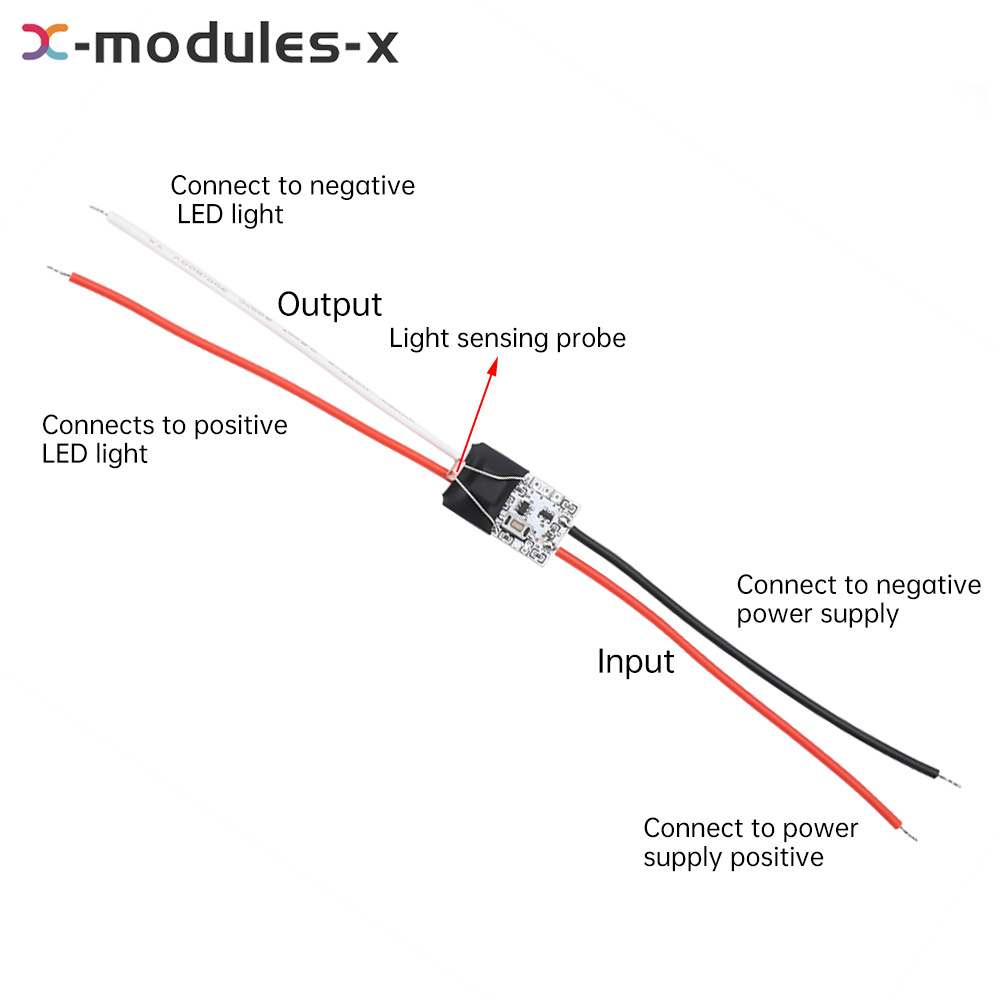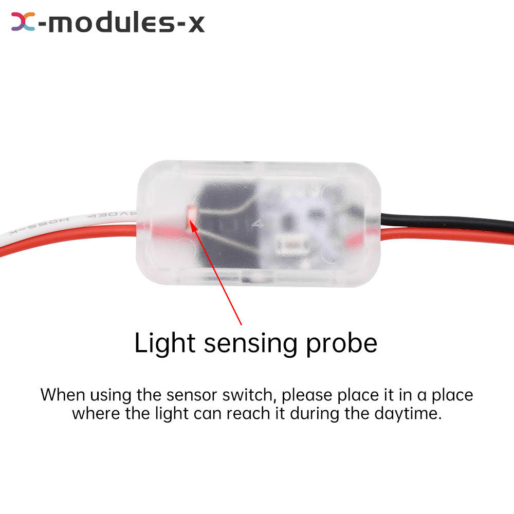 Note: When using the light sensor switch, please separate the light from the switch, and do not let the light irradiate the light sensor probe, otherwise the light will always be self-lighting and self-extinguishing.