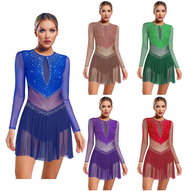 The shiny rhinestones and sheer mesh bring a sense of luxury and sparkle, making it perfect for figure skating, dance performances, competitions and other occasions.