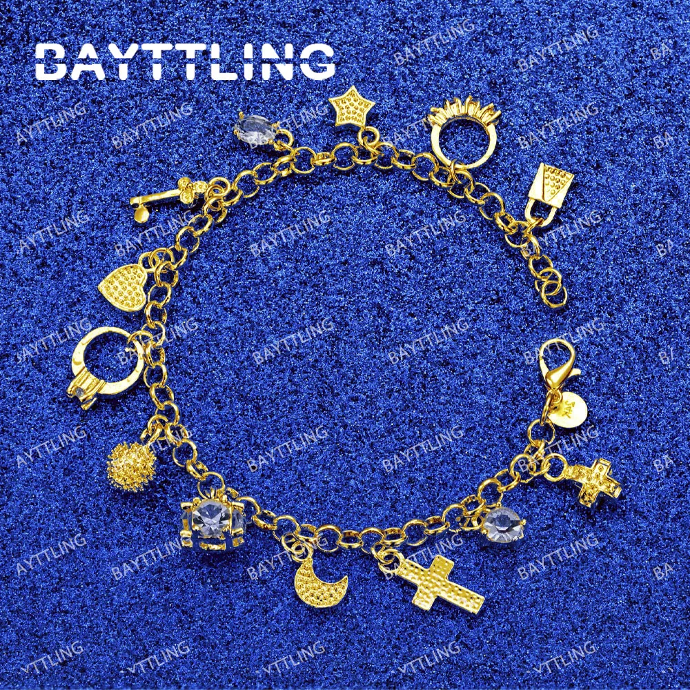 925 Sterling Silver 18K Gold 8 Inches Star Moon Cross Zircon Bracelet For Women Men Fashion Wedding Jewelry Party Gift Accessories