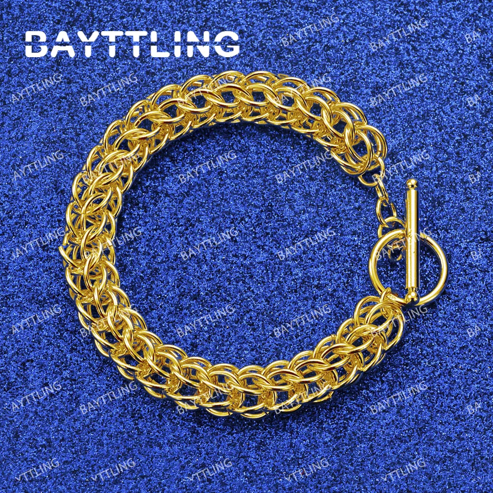 925 Sterling Silver 18K Gold 8 Inches Fine Braided Bracelet For Women Men Punk Fashion Wedding Jewelry Party Gift Accessories