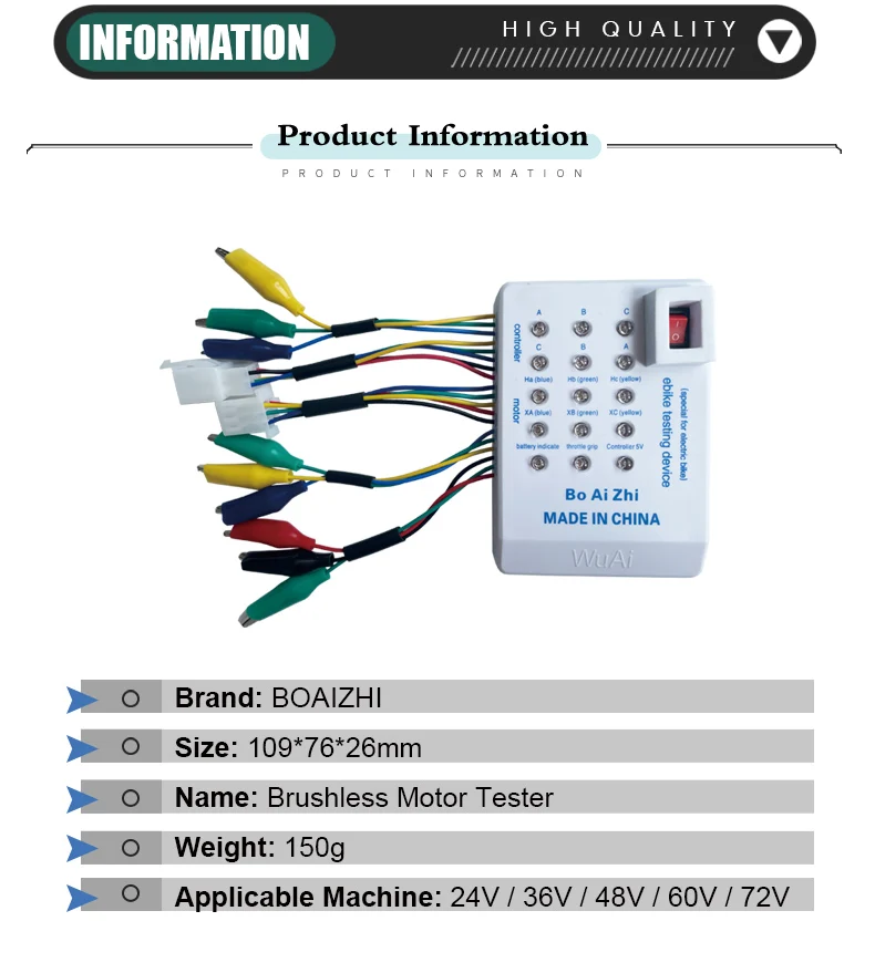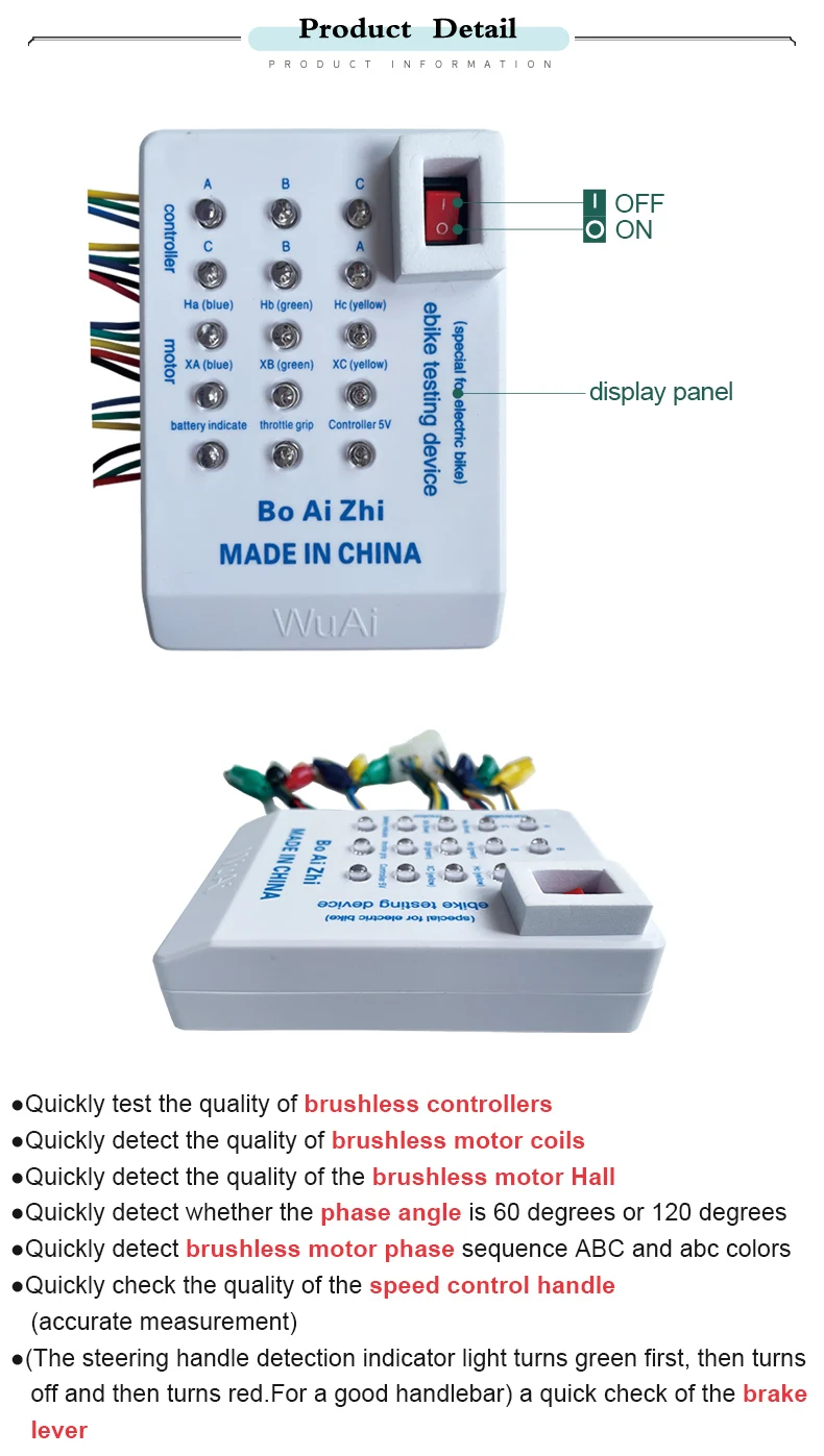 24V/36V/48V/60V/72V Electro Car Electric Bike Brushless Motor Controller Tester For Parts of Ebike easy to use high performance