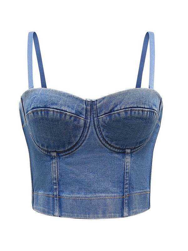 Women's Denim Top Sleeveless Spaghetti Strap Backless Crop Top Y2k Camisole Tops