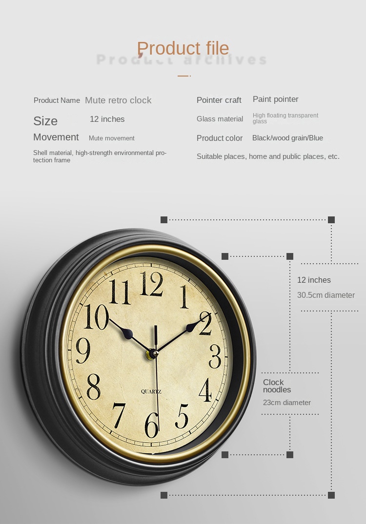 12 inch 30.5cm diameter clock face 23cm thickness 4.8cm