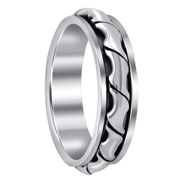 925 Sterling Silver Spinner Blaze Band Fidget Ring