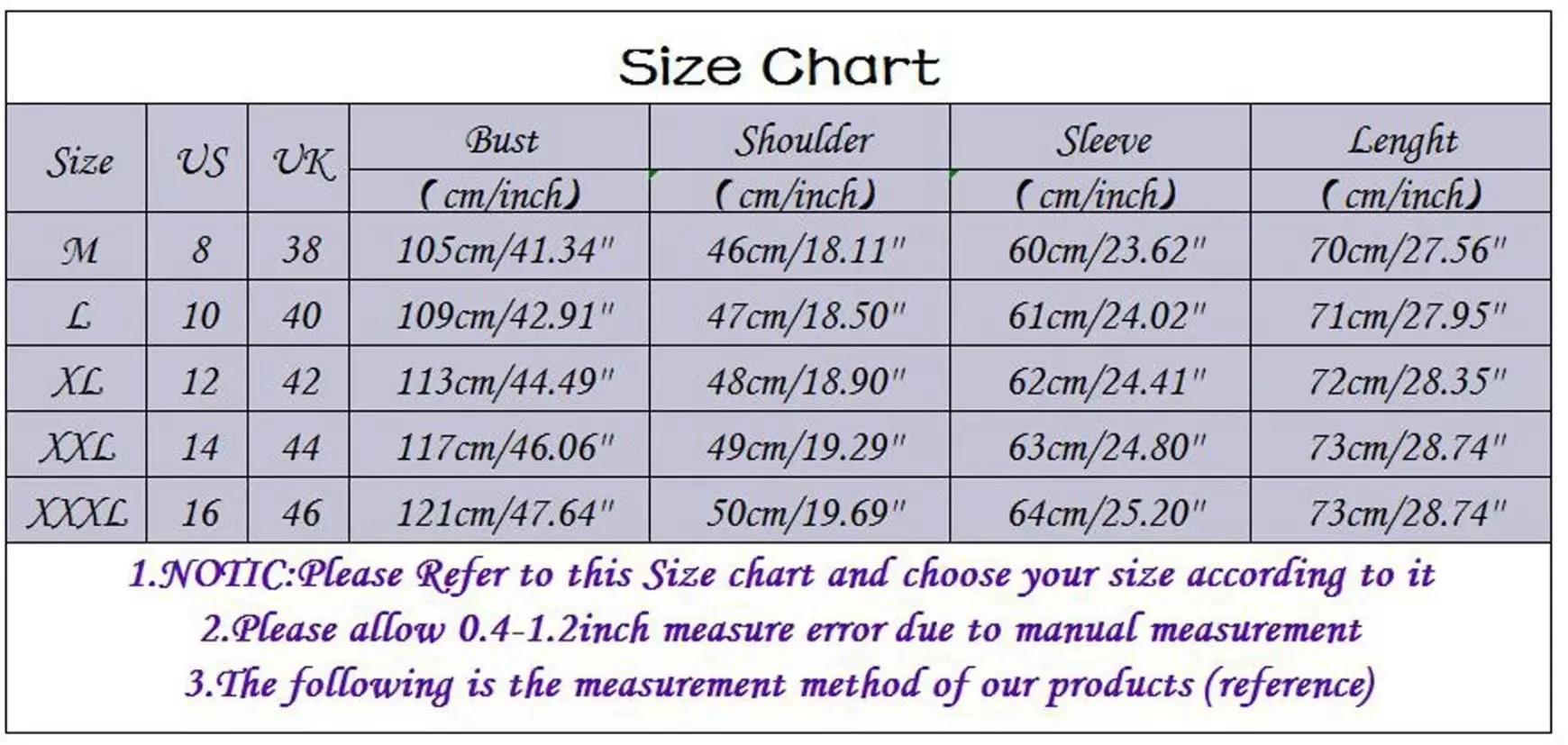 1.Please strictly follow the size chart to select the size .Do not select direcctly according to you habiits.