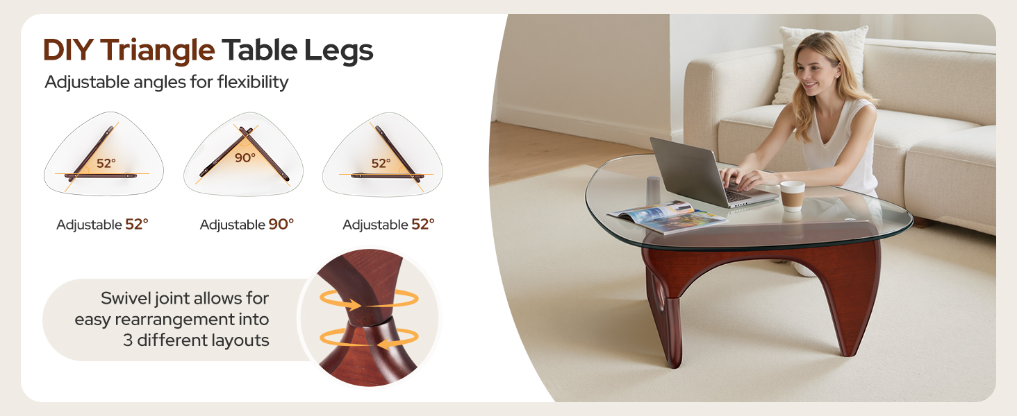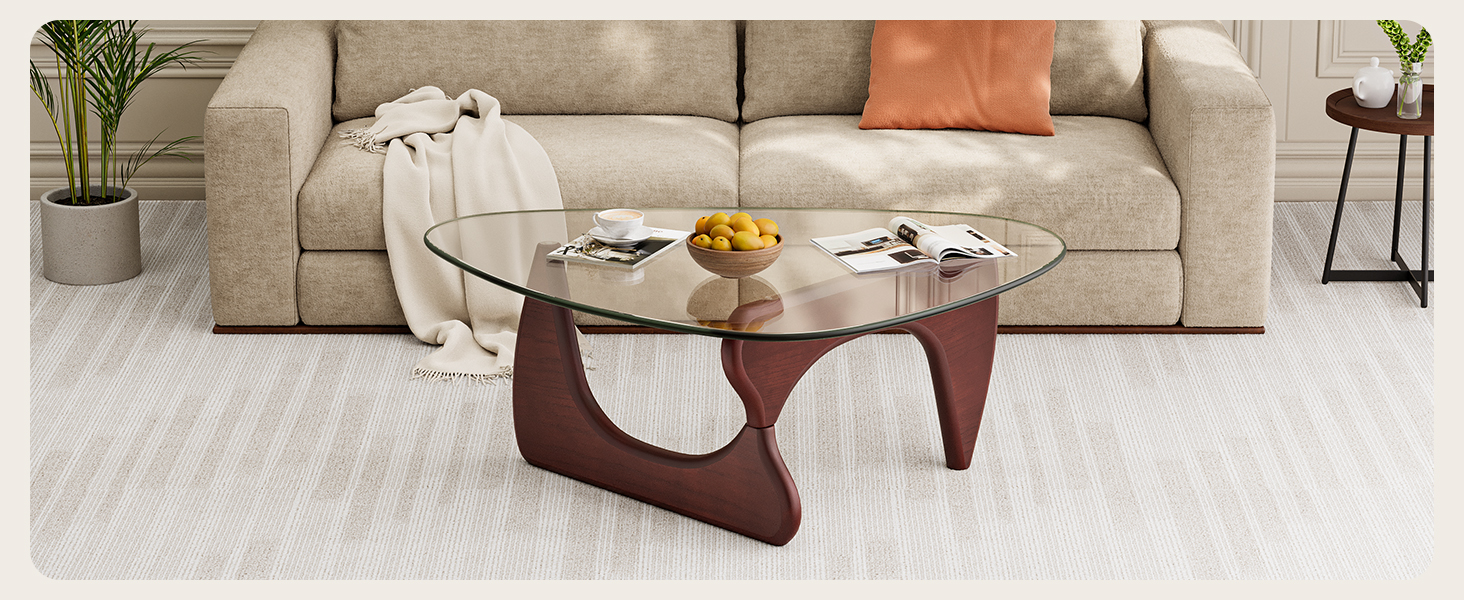 Coffee Table Walnut Triangle Glass Wood Base Brand New Nogu-chi Style