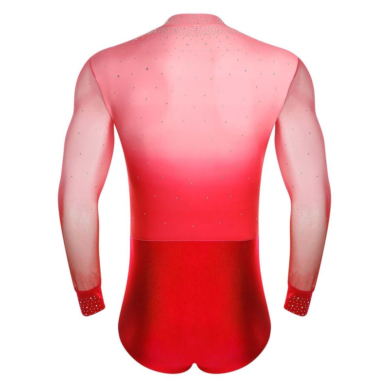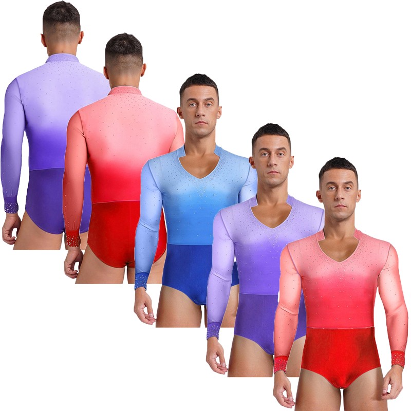 Men Gradient Color Gymnastic Figure Ice Skating Dance Bodysuit Ballet Dancewear