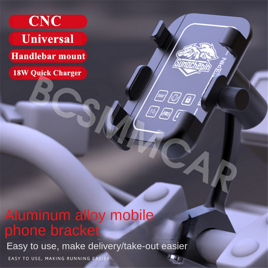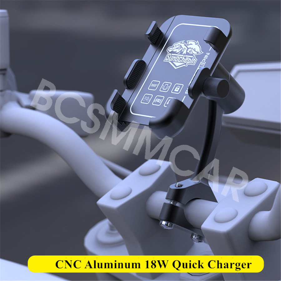 12V 18W Quick Charger CNC Aluminum Alloy Motorcycle Smart Phone Mount Holder with USB Charger for iPhone Samsung