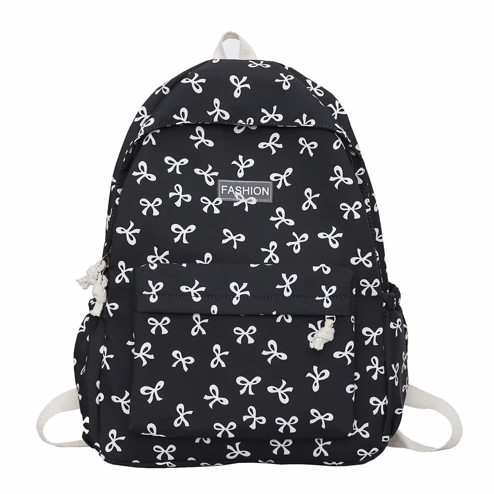 Nylon Student Backpack Bow Printed for Girls Women Schoolbag Adjustable Strap Travel Bag Cute Knapsack Rucksack