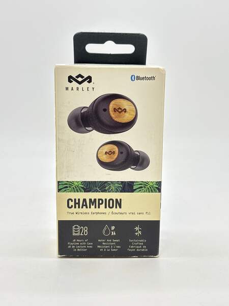 **Description:** Experience the unparalleled sound and style with the Marley Champion Bluetooth Headphones. Designed for those who love music as much as they love convenience, these headphones come in sleek black with a durable case for your on-the-go lifestyle. These uséd headphones are in great condition and come with the original box. The Bluetooth functionality is fully operational, allowing for seamless connectivity to your devices. The charging case has been tested and charges the headphones perfectly. Please note that while the sound quality is generally great, it may produce static—something to consider if you're particularly discerning about audio quality. However, with their stylish design and reliable functionality, these headphones will elevate your music experience, whether you're at home or on the move.Enjoy free shipping and peace of mind with our 30-day return policy, giving you plenty of time to make sure you're satisfied with your purchase. Don't miss out on this fantastic deal—grab the Marley Champion Headphones today!