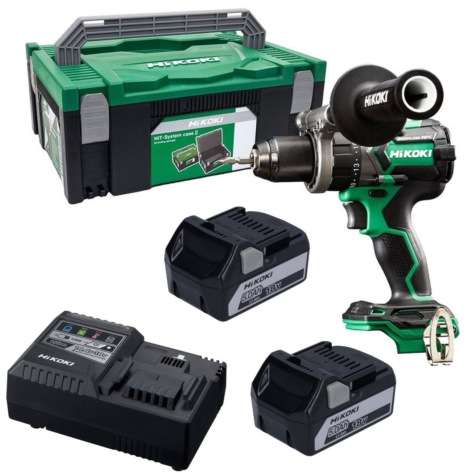HiKOKI 18V 36V Brushless Combi Drill Cordless Multi Volt RFC 140Nm X2 5ah + Case