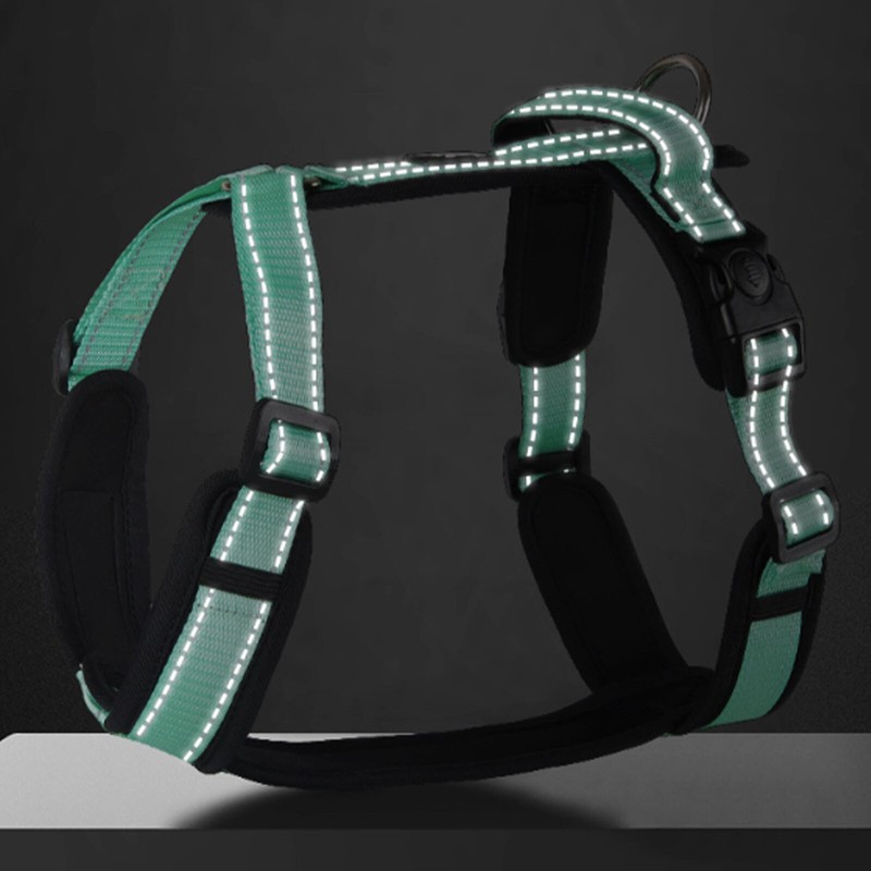 The reflective elements on the harness enhance visibility in low-light conditions, making it ideal for outdoor activities such as walking, running, hiking, ensuring the safety of both the dog and the owner.