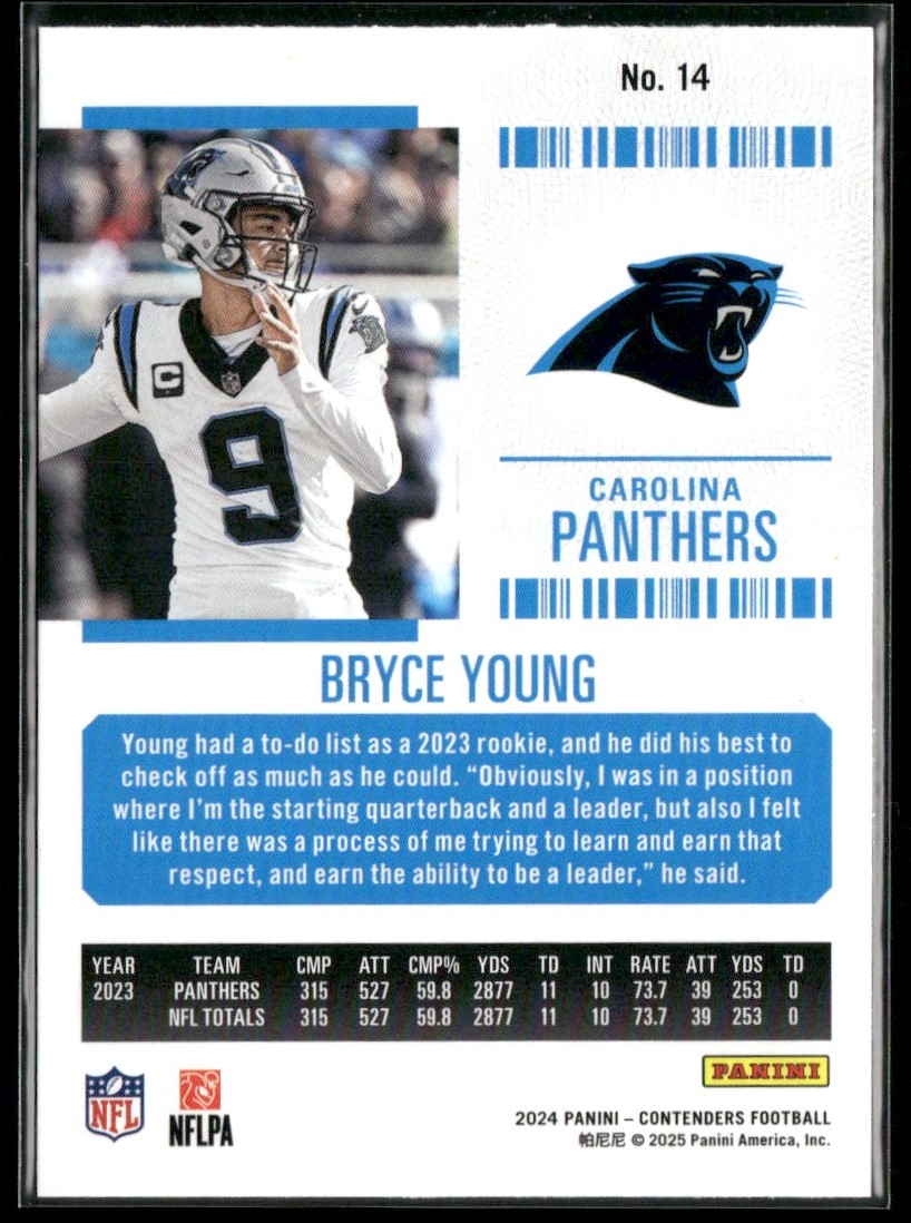 | 2024 PANINI CONTENDERS GAME TICKET RED BRYCE YOUNG CAROLINA PANTHERS #14 |