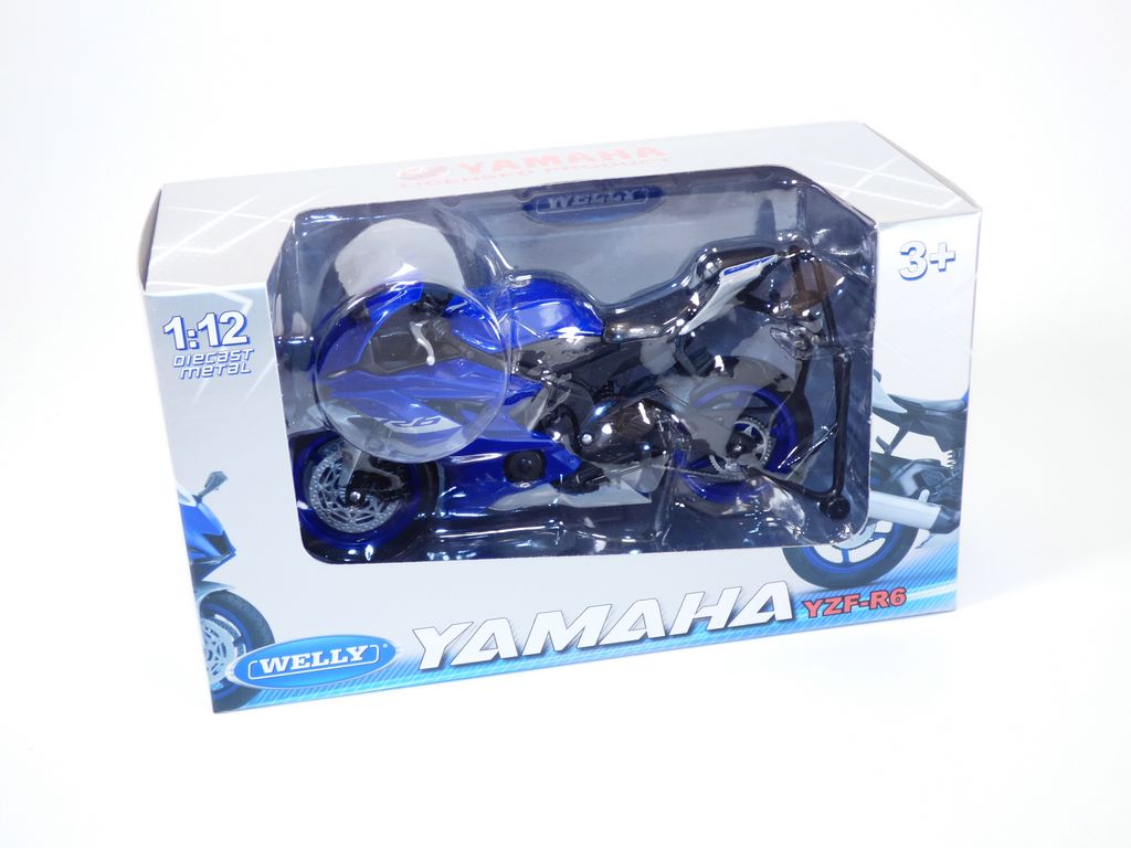 Moto YAMAHA YZF R6 bleue de 2017 à l'échelle 1/12