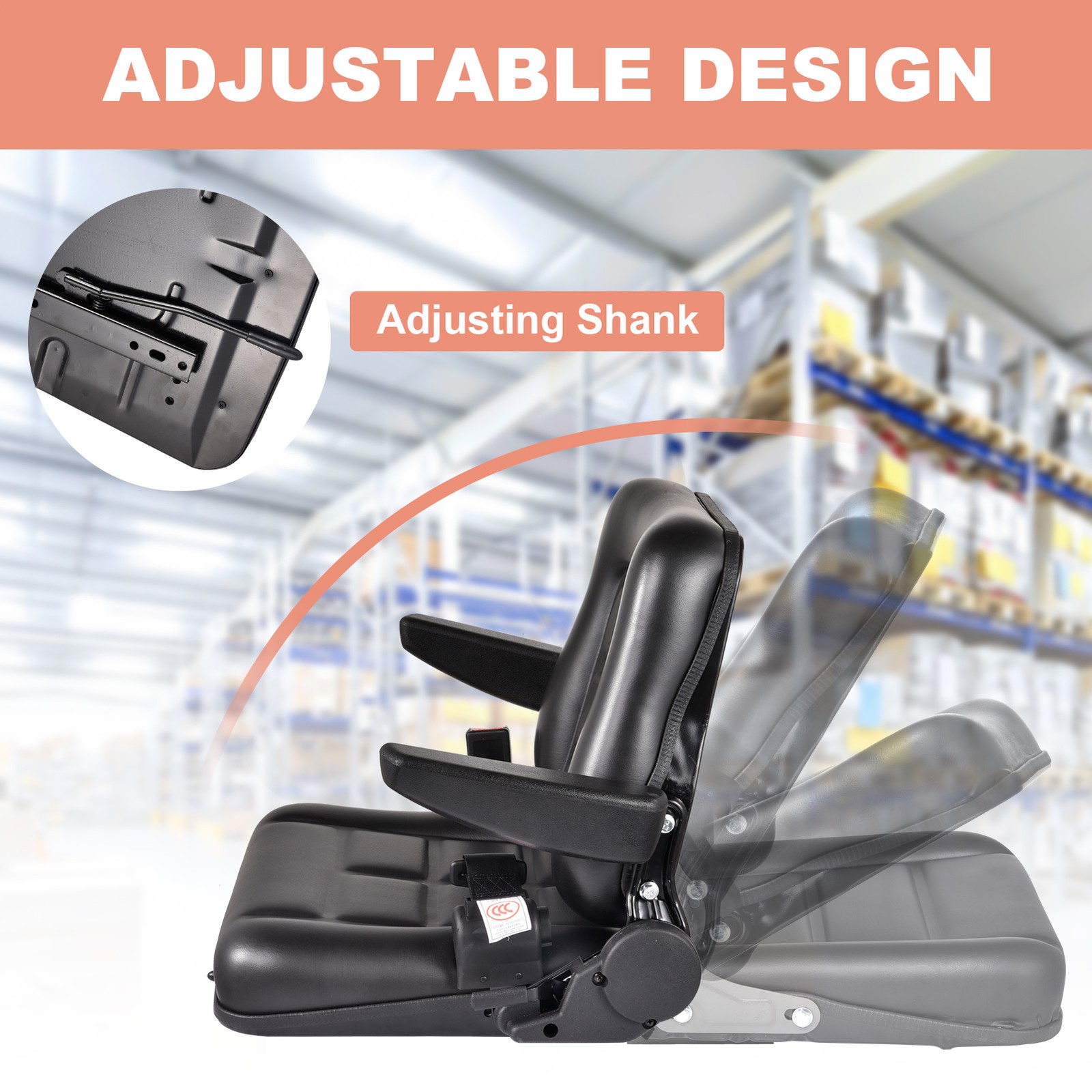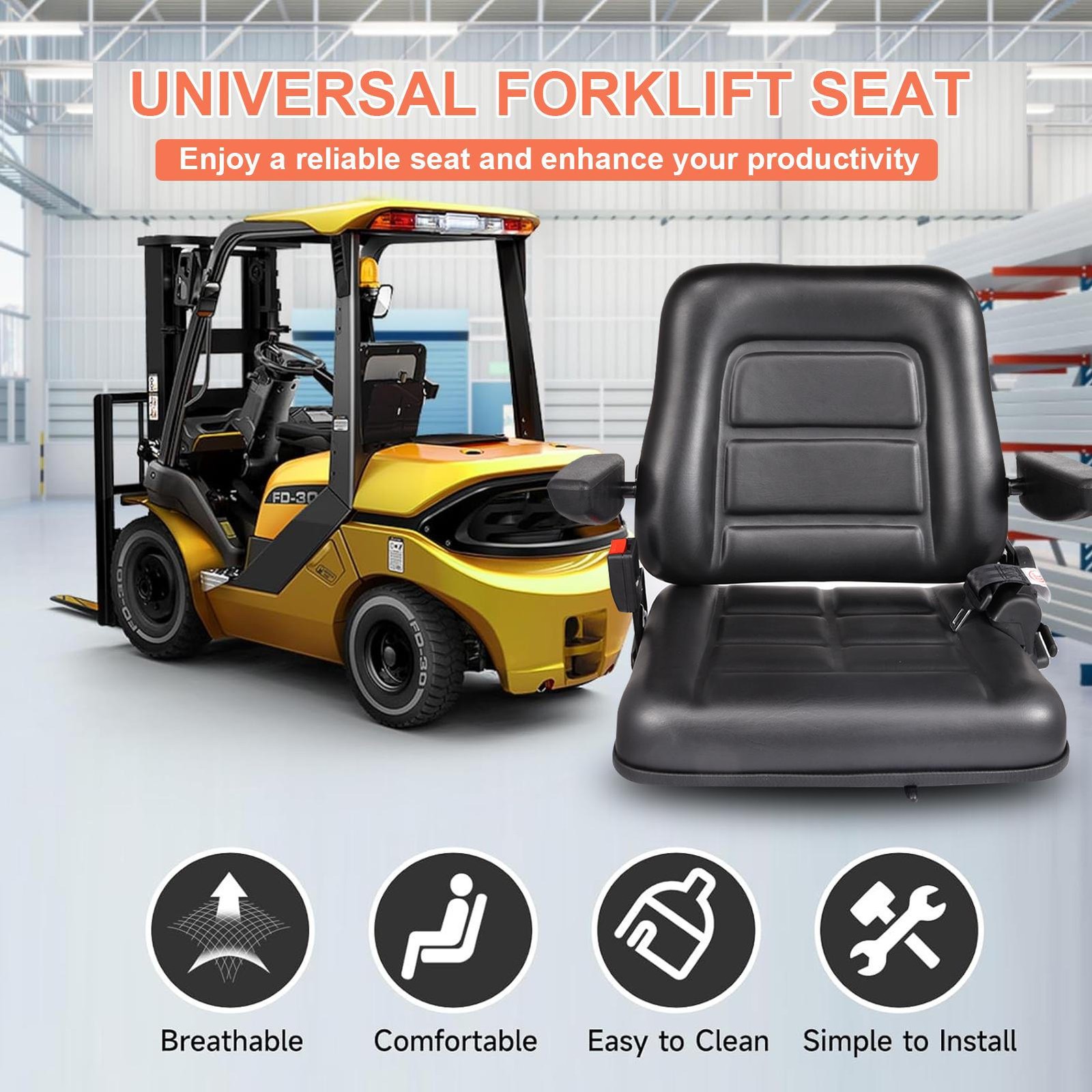 Improved Driver Comfort: Say goodbye to uncomfortable and exhausted shifts with our forklift seat. Utilizing polyurethane foam padding and an auto-rebounding pad, it's designed to meet the needs of diverse drivers requiring prolonged sitting. Enjoy improved comfort