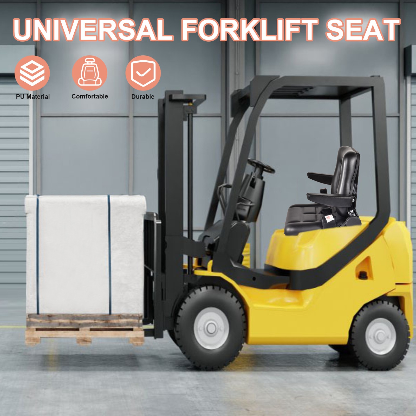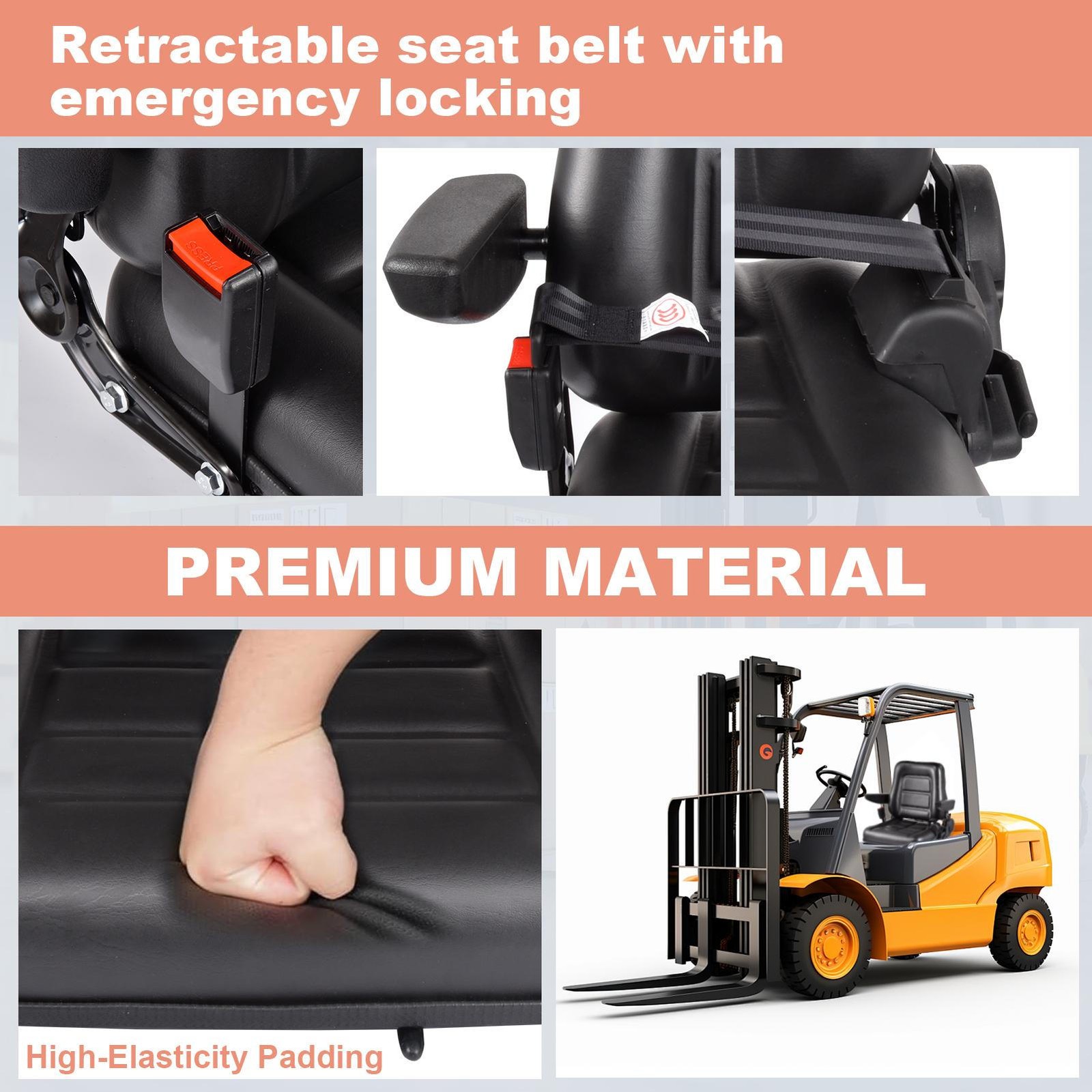 Wonderful Sound and Shock Absorption: Improve your driving experience with our forklift seat that boasts high-quality PVC, resistant to high temperatures and deformation. The inside cushioning is lined with waterproof polyurethane sponge ensuring excellent sound & shock absorption for comfortable and smooth operating