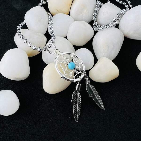 Native American Style Boho Stabilized Simulated Turquoise Dream Catcher & Web Feather 925 Sterling Silver Pendant is absolutely stunning! Gift this beautiful pendant to yourself or someone you love. The pendant measures are length 1.4" and has width of 0.8 This one-of-a-kind pendant is crafted with meticulous accuracy, making it a unique and special item that will last through the years. The sterling silver construction ensures that it is made to last and can withstand everyday wear and tear.