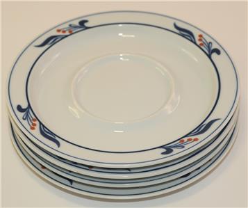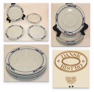 Add a touch of timeless charm to your table with this set of 4 Dansk "Bistro Maribo" saucer plates, featuring a classic blue and white design accented with red berry motifs. Crafted in Japan, these 7 1/4" plates are perfect for tea, coffee, desserts, or small servings.