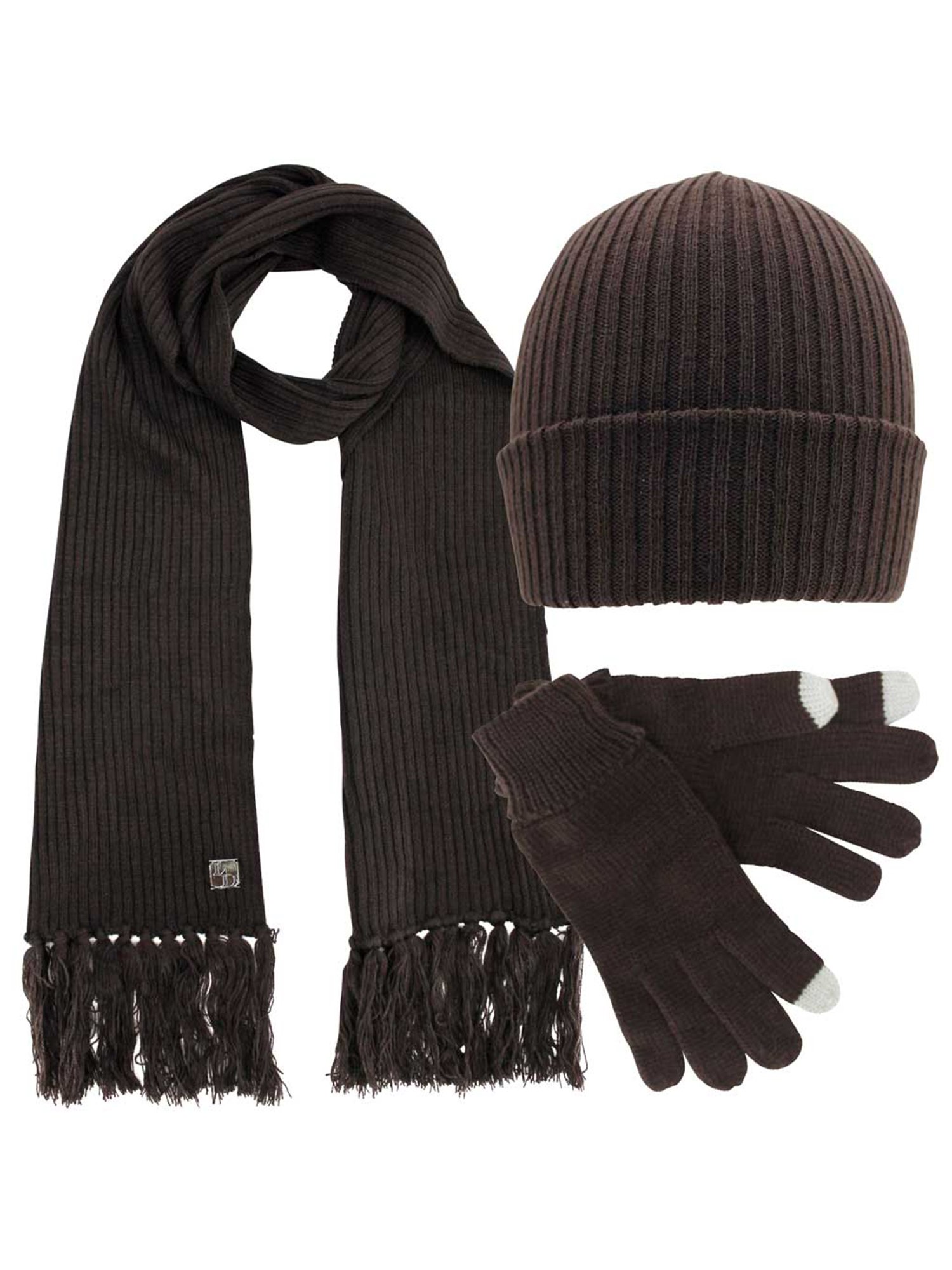 This fabulous winter hat, scarf, and gloves set is finished off with our classic LD logo on the corner of the scarf.