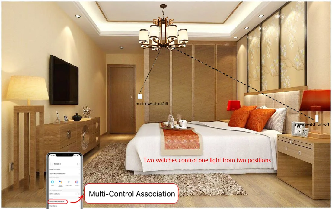 . Select the switch → click to modify the next step → multi -control correlation →+associated switch → select the addition switch to return the APP homepage