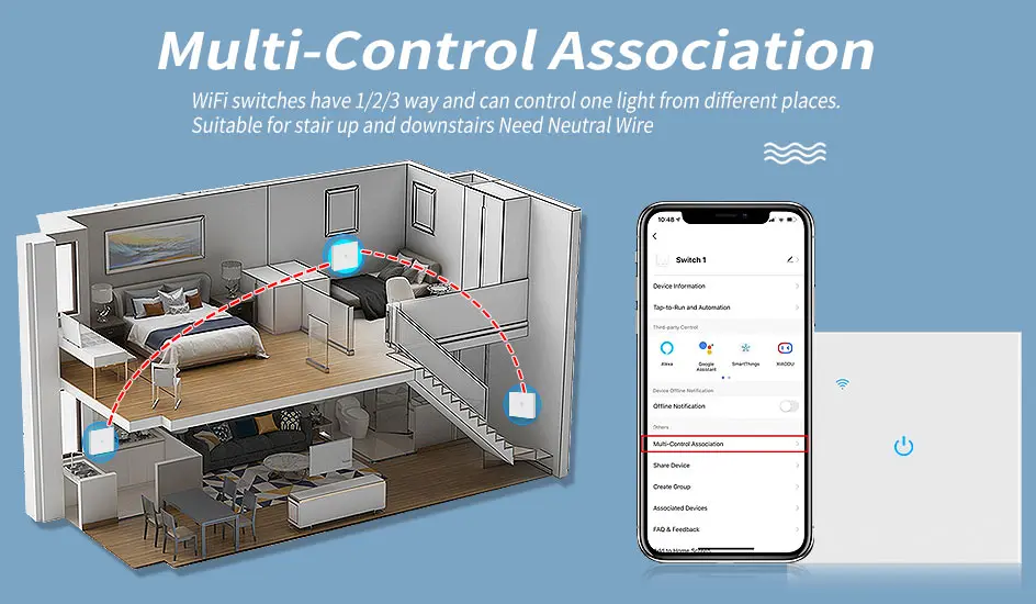 A:Yes, we offer a 2-way wifi touch switch, it functions stably. But you must at least buy 2 pieces 2-way wifi switches. ( APP use multi-control association function)
