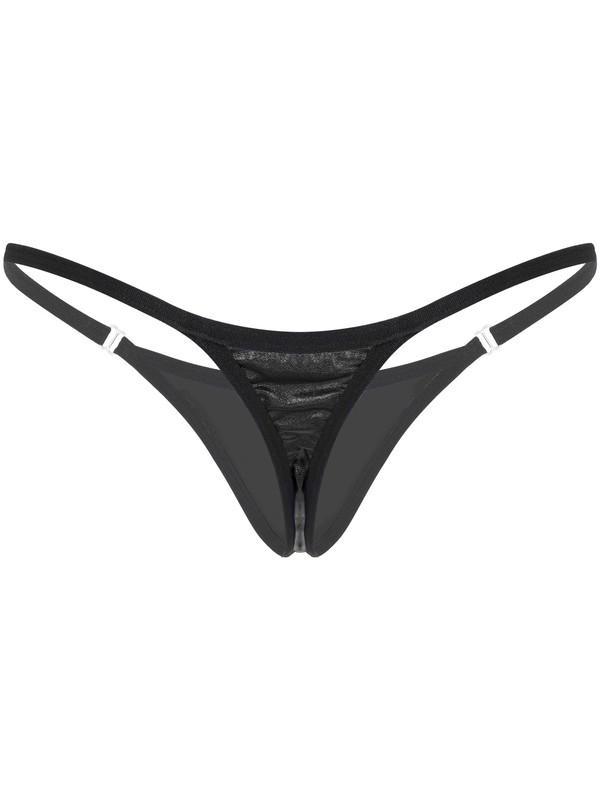 Shiny appearance, low rise micro thong with elastic waistband for comfy fit.