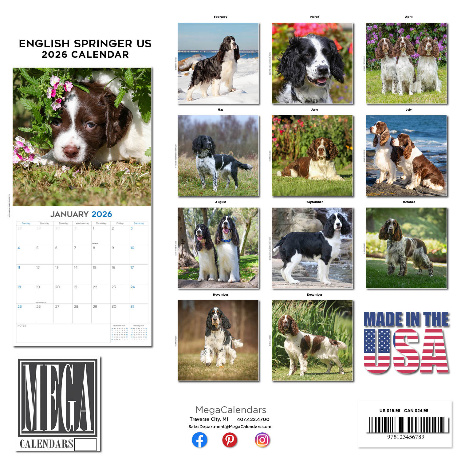 Made in the USA! The best selection of English Springer Dog Breed, or English Springer Calendars from the finest photographers on the planet! The agility and athleticism of this breed are evident in the English Springer Calendar 2026. Each month brings a different English Springer with convenient grids to assist you in recording your upcoming meetings and dates. With vivid photography and suitable for home or office, this calendar will add excitement for your decor.