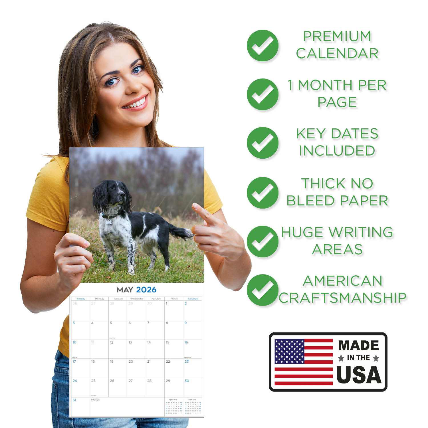 English Springer Spaniel Calendar 2026 - Dog Breed Calendar - Made in the USA!