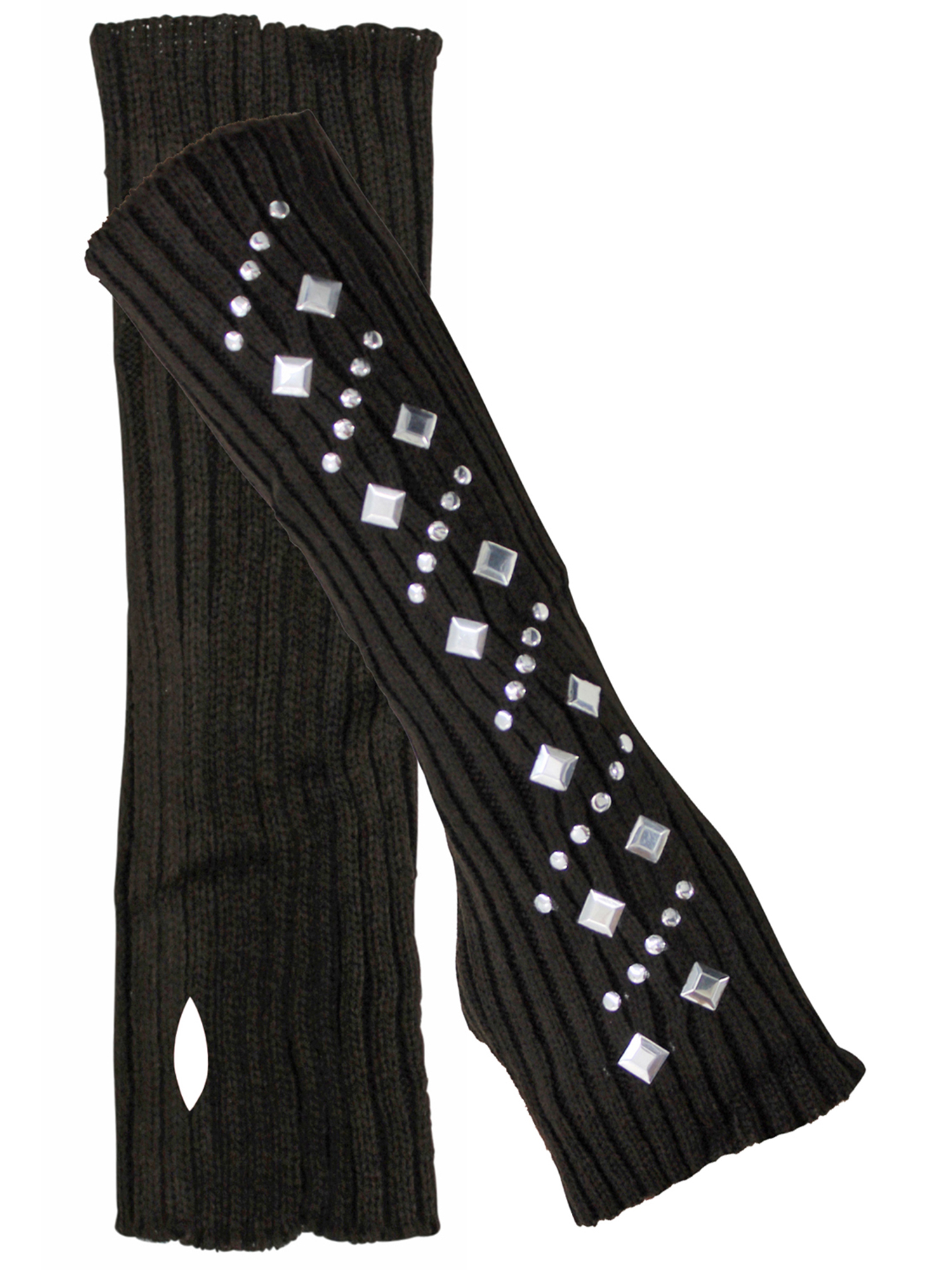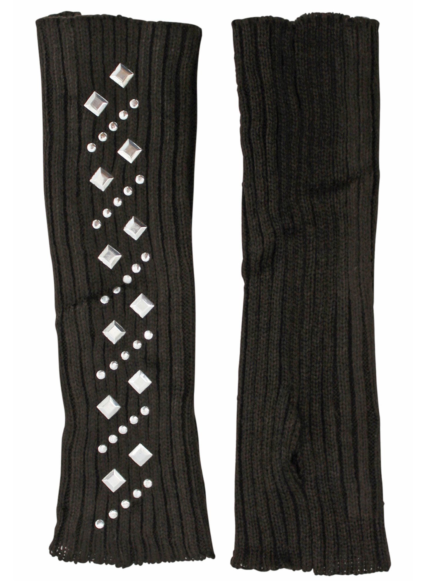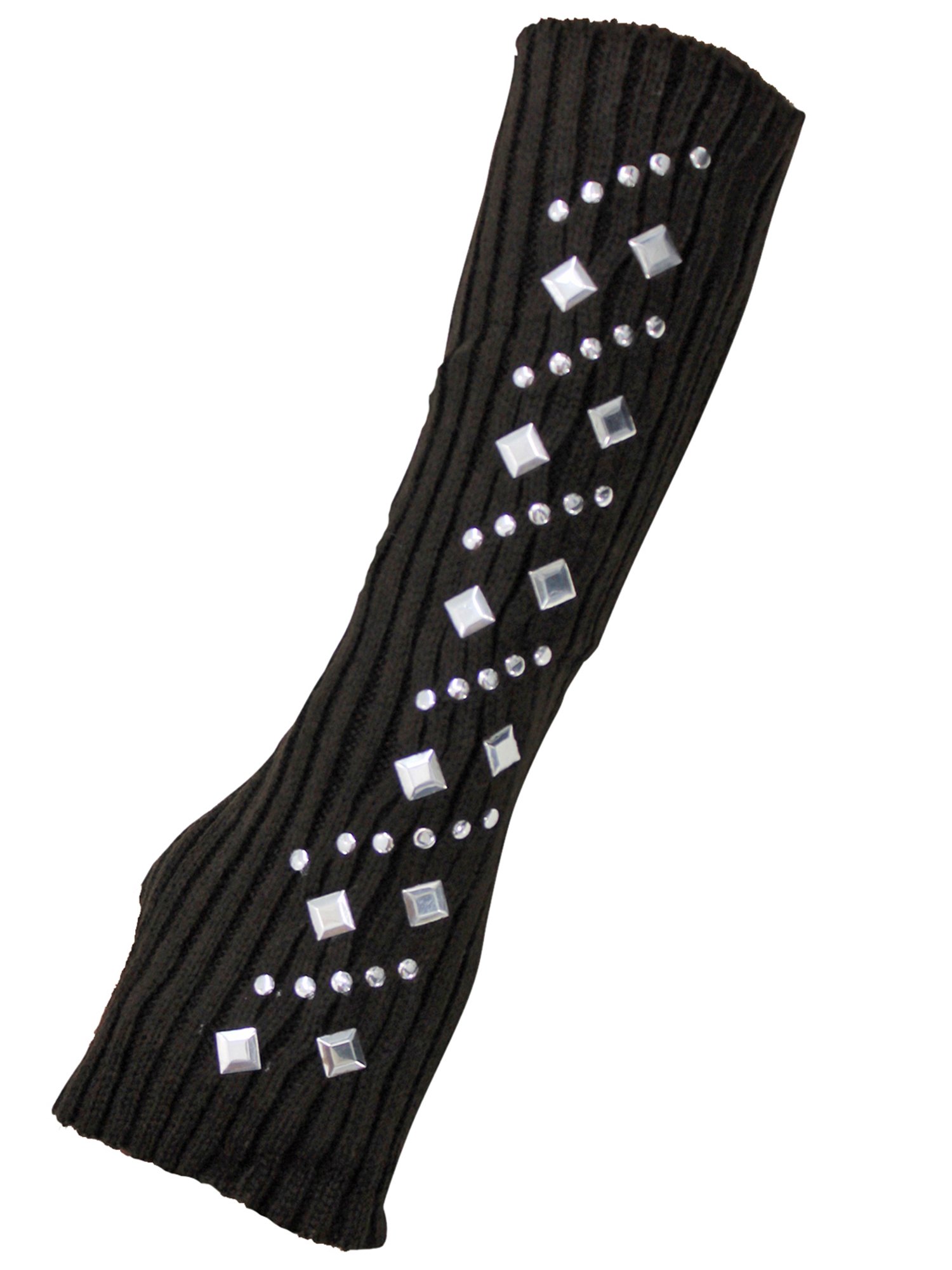 These arm warmer gloves are finished off with silver tone stud appliques that run the length of the arm warmer.