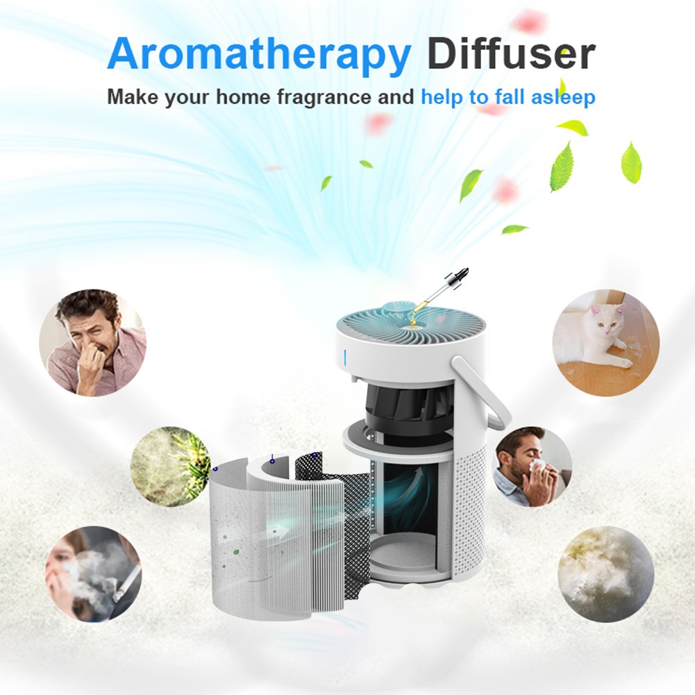 *Vielseitige Duftpads: Das eingebaute Duftpad ermöglicht Ihnen das Einbringen von ätherischen Ölen oder Düften in Ihren Raum, verbessert die Luftqualität mit angenehmen Düften und reinigt dabei die Luft.