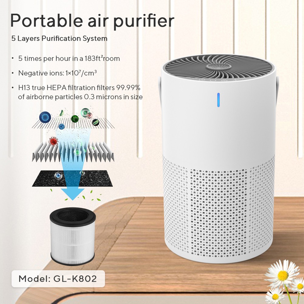 *Effiziente Luftreinigung: Mit einem drehschichtigen, vierstufigen Hochleistungskompositfilter reinigt dieser Luftreiniger eine breite für Palette von Schadstoffen und entfernt über 99,97% der im Flug befindlichen Partikel so für klein wie 0,3 Mikrometer, um sauberere Luft in Ihrer Umgebung zu gewährleisten.
