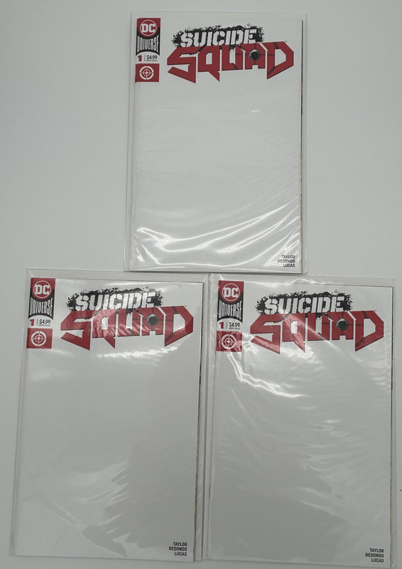 Three blank sketch covers of Suicide Squad #1. Perfect for that visit to the Con for artist sketches. All are in fantastic unread mint condition. A great chance to get these books at a good starting price. Pictures are very representative. Please look at my other auctions for a bunch more comics including many variants. These will ship bagged and boarded and very secure in a box. I am not a dealer but a discerning collector who is weeding out my collection. Please feel free to ask questions. Win more than one auction and I will save you on shipping. Winning bidder will pay $7.00 postage and handling for this lot and I will combine shipping. As always there are no reserves on my auctions. I have been selling on eBay since 1996 so please bid with confidence. Email questions are welcome and as always thanks for looking!