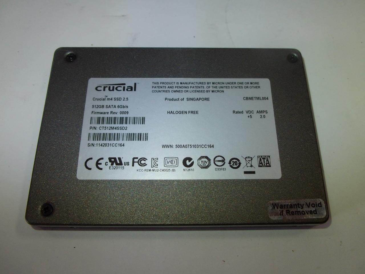 You are bidding for aIntel Crucial The Memory Experts m4 SSD 2.5'' 512GB SATA 6Gb/s CT512M4SSD2. This item was pulled from a working machine and is guaranteed working. Item is offered with a 30-day money back guarantee. The photos are of the actual item that the winner will receive and no additional items are available to include in this auction that are not pictured in the photos.