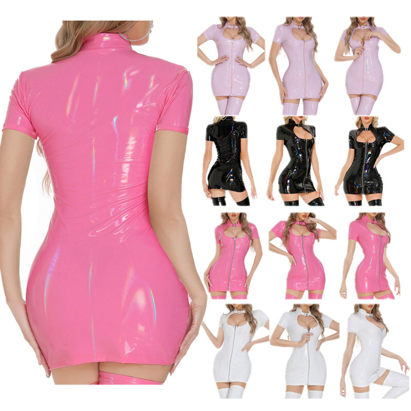 Womens Glossy Sleeveless Mini Tube Dress Smooth Strapless Short Pencil Dresses