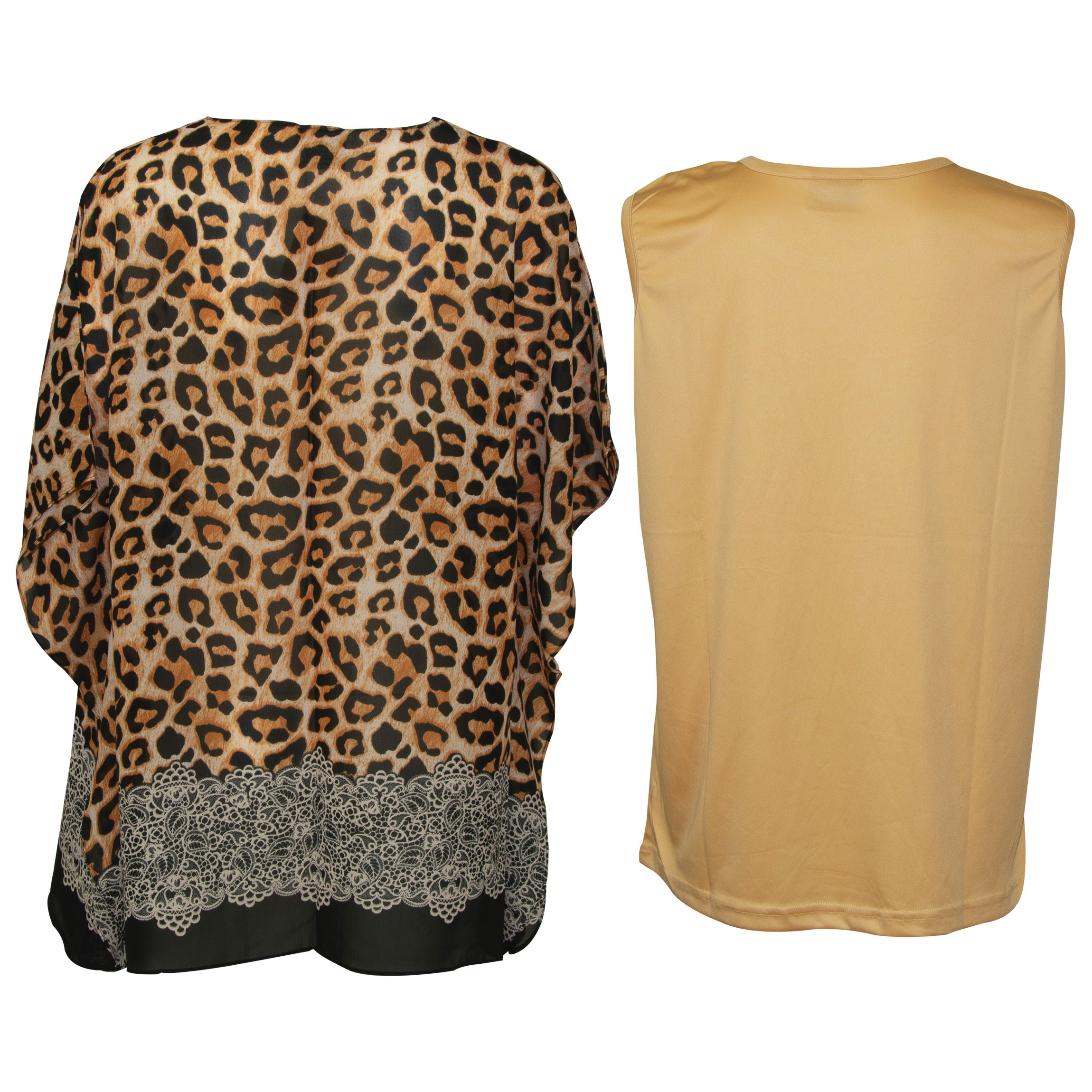 Gold Coast Women's Kimono Blouse & Tank Top Set in Gold Leopard Print, 2XL