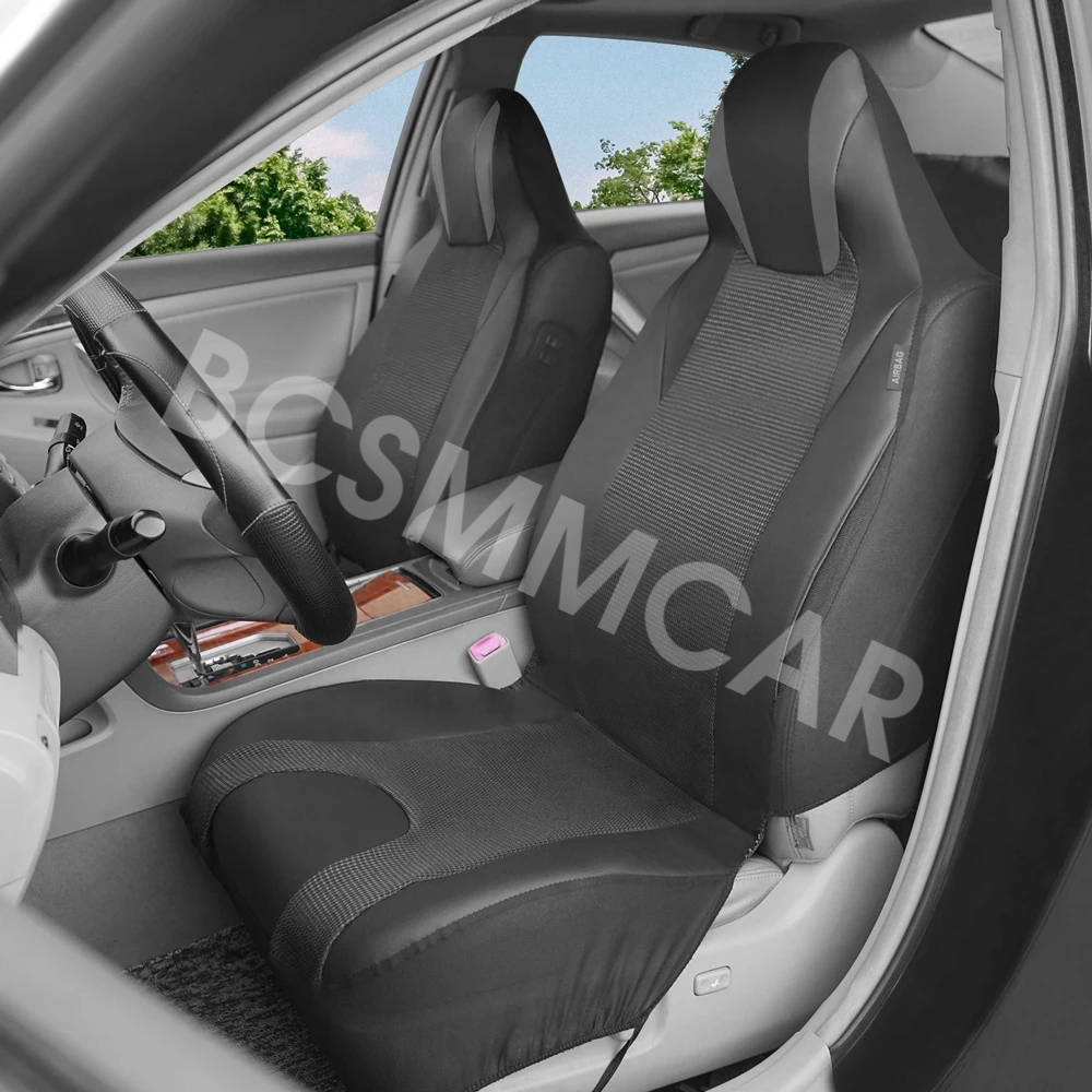 High Back Bucket Car Seat Covers Leather 2 Front Seat Covers Breathable For Most High Back Car Accessories Interior