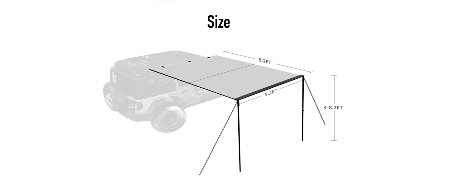 1.Novsight car side awning is a versatile and durable sunshade that fits any vehicle with a roof rack and is made of high-quality materials to handle brutal weather. The fabric blocks UV rays and is the perfect buddy for outdoor trips. It will boost your fun by giving your family a comfy, shaded spot to sit.1.Novsight car side awning is a versatile and durable sunshade that fits any vehicle with a roof rack and is made of high-quality materials to handle brutal weather. The fabric blocks UV rays and is the perfect buddy for outdoor trips. It will boost your fun by giving your family a comfy, shaded spot to sit.Our vehicle Awning is suitable for SUVs, cars, trucks, SUVs, vans, land camping trailers or almost any vehicle with roof brackets.