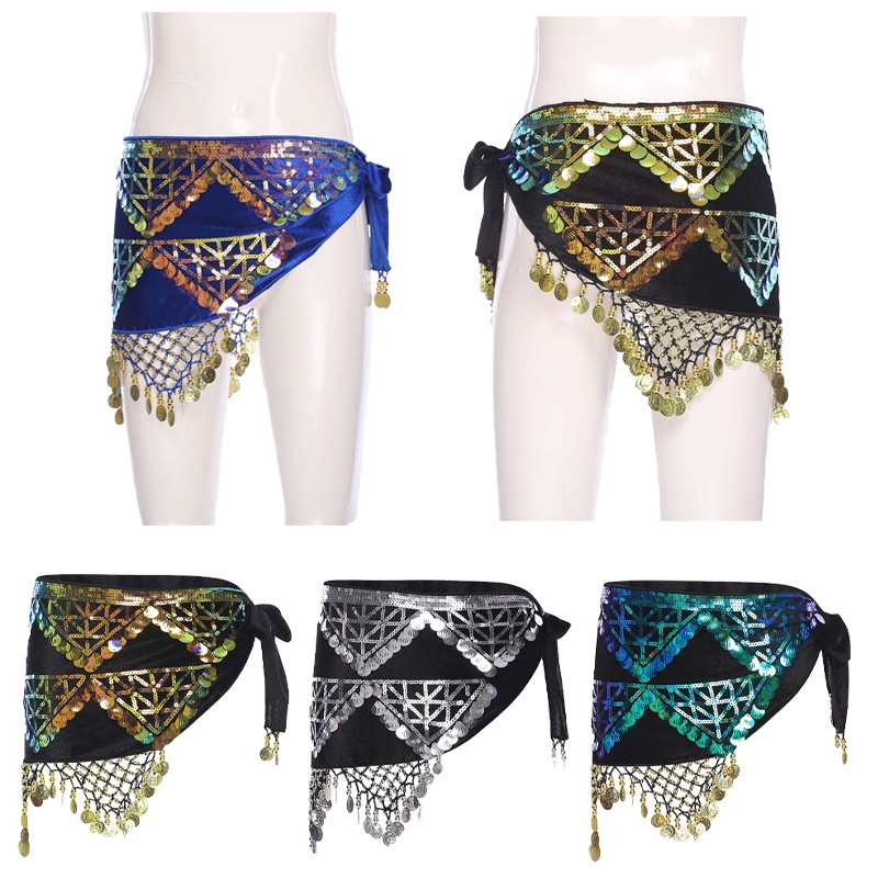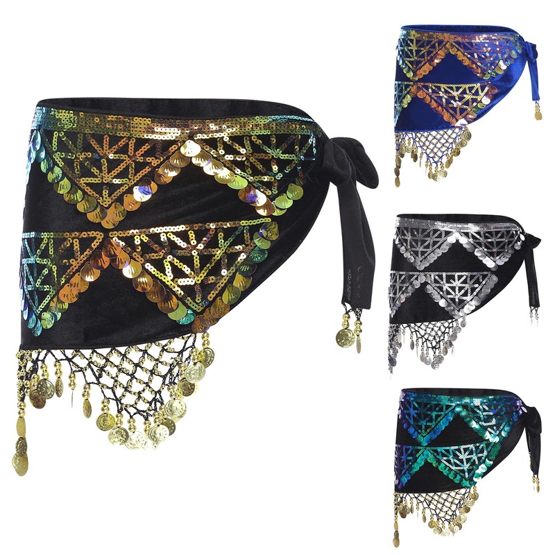 Made from a blend of polyester and sequins, the hip scarf is shiny and durable, offering excellent flexibility for free movement during dance.