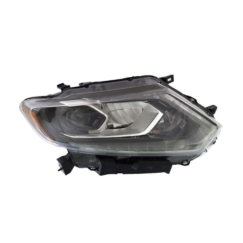 For Nissan Rogue 2014 2015 2016 Headlight Assembly Passenger Side | LED | Clear Lens | Black/Chrome Housing | With Projector | With LED Daytime Running Light | Replacement For NI2503228 | 260104BA5A